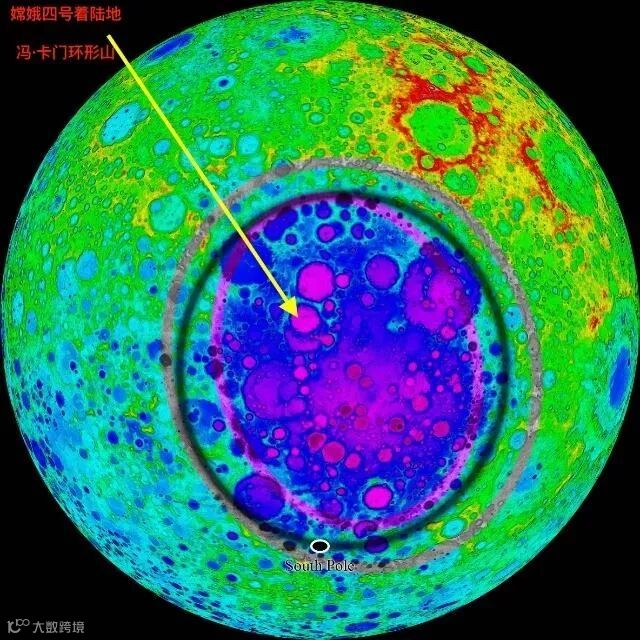 月球背面陨石坑密布、尤其南极-艾特肯盆地的地形和高程图异常复杂,对各种配合着陆传感器的系统要求很高。特别是高度方面的变化速度超过了以往任何一次着陆,最大落差高达16.1千米。冯·卡门环形山属于其中一块核心区域,对嫦娥四号而言,相当于翻越崇山峻岭来找它。要成功着陆并释放月球车探测,所克服的难度和意义可想而知。