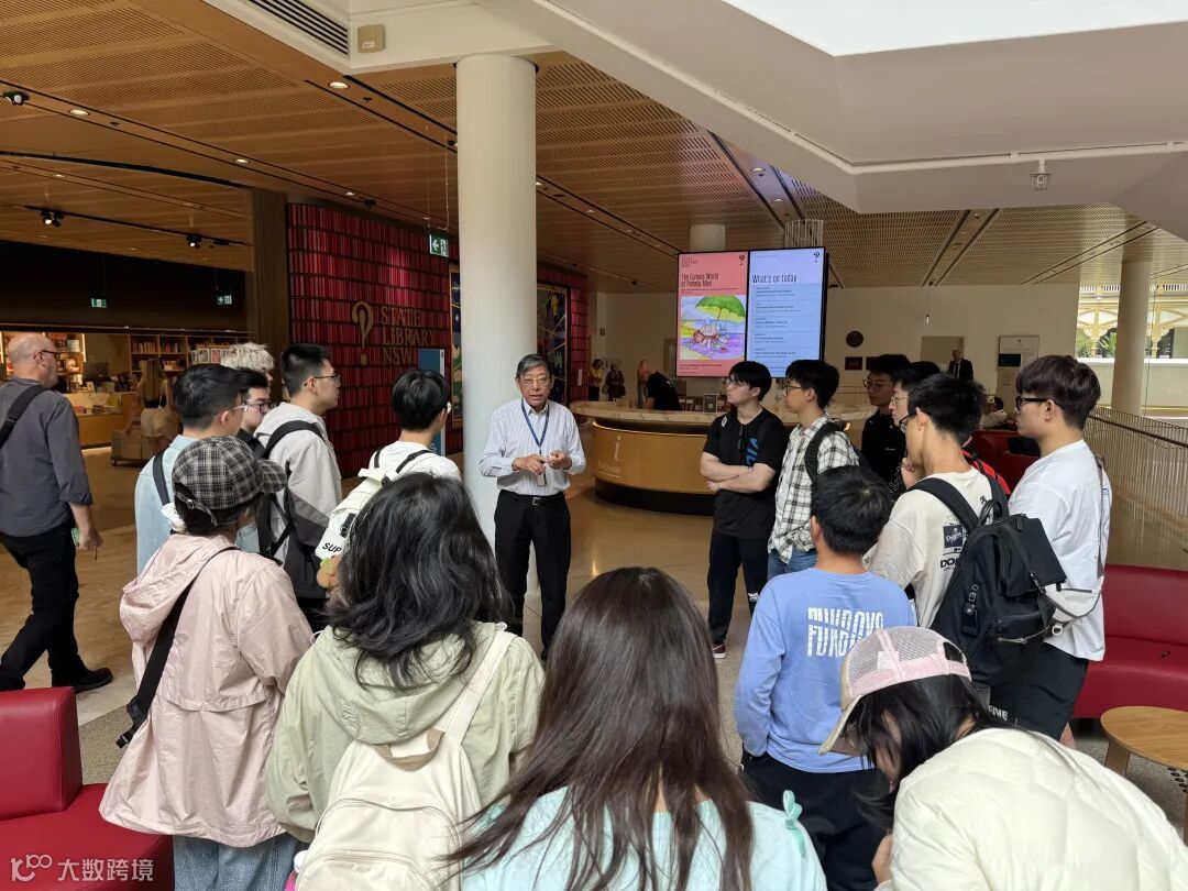 午后,研学行程继续推进,第一站便是新南威尔士州立图书馆。这座拥有近200年历史的图书馆,矗立在城市中心,古朴的建筑外观之下,拥有海量的藏书与珍贵的历史文献,是悉尼乃至澳洲的“知识殿堂”,在澳洲的学术研究与社会文化传承中扮演着核心角色。步入馆内,时光仿佛慢了下来,墨香与静谧交织的空间里落针可闻,唯有阳光透过高大的玻璃窗,在木质书架与整洁地面上投下斑驳光影,连呼吸都不自觉地放轻,也许这就是知识的厚重与力量。