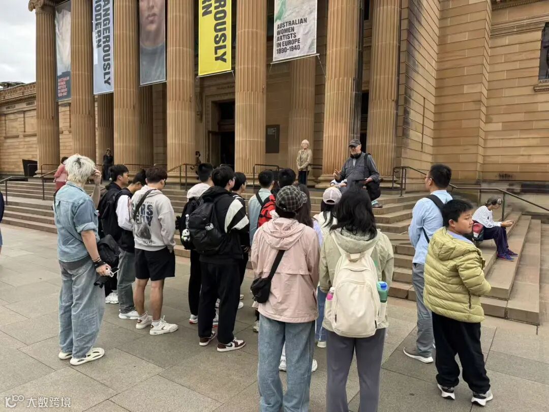 一大早,师生们奔赴新南威尔士州美术馆,见证其在城市文化版图中的核心地位,开启一场沉浸式的艺术熏陶之旅。抵达美术馆后,大家首先集合在庄重大气的大门前,认真聆听讲解员对美术馆的介绍。作为澳大利亚最具影响力的美术馆之一,这里汇集了从古典到现代、从本土到国际的海量艺术珍品,既有澳洲原住民的古老岩画,也有印象派大师的传世名作,更有当代艺术的先锋创作。