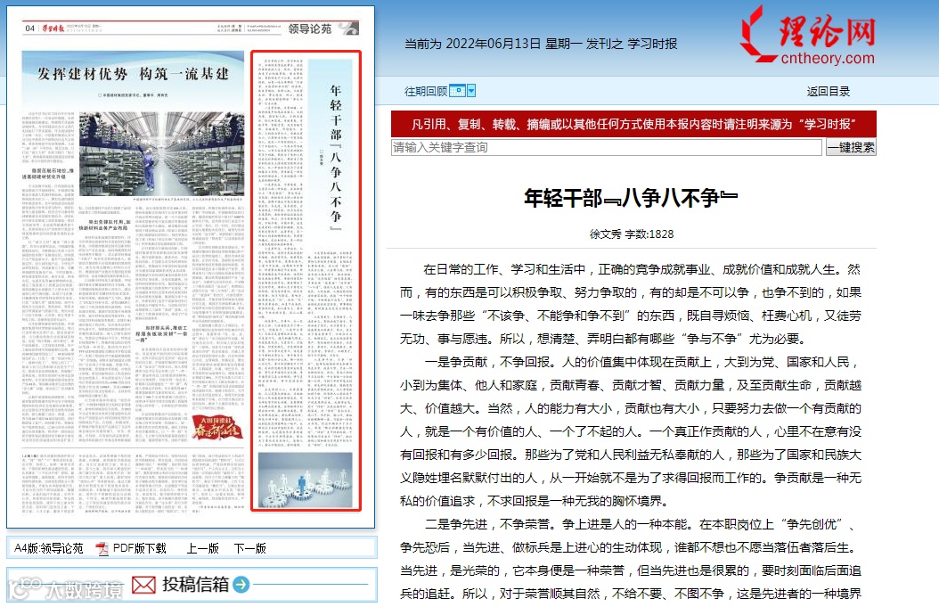 近日出版的《学习时报》,刊发中组部“笔杆子”徐文秀文章