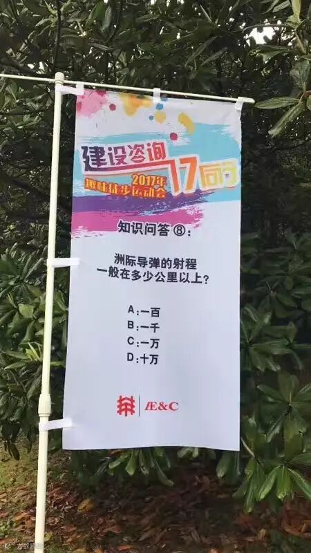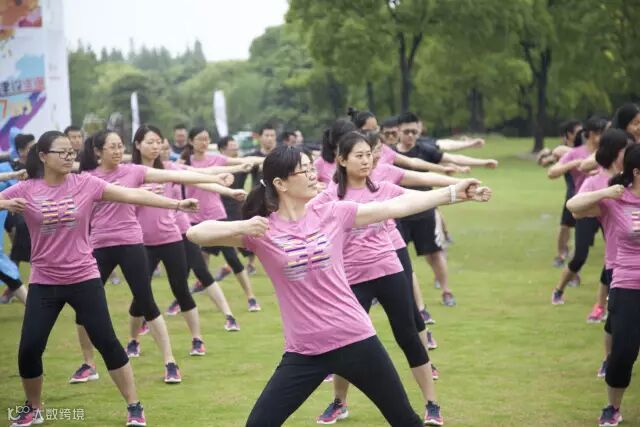 广播操比赛后,大家经过热身运动后,随着总经理倪飞的一声发令枪响,此次活动的第二部分趣味徒步比赛正式开始。此次的趣味徒步比赛共设3个关卡,其中包括:知识问答、飞跃地平线、穿越五环。