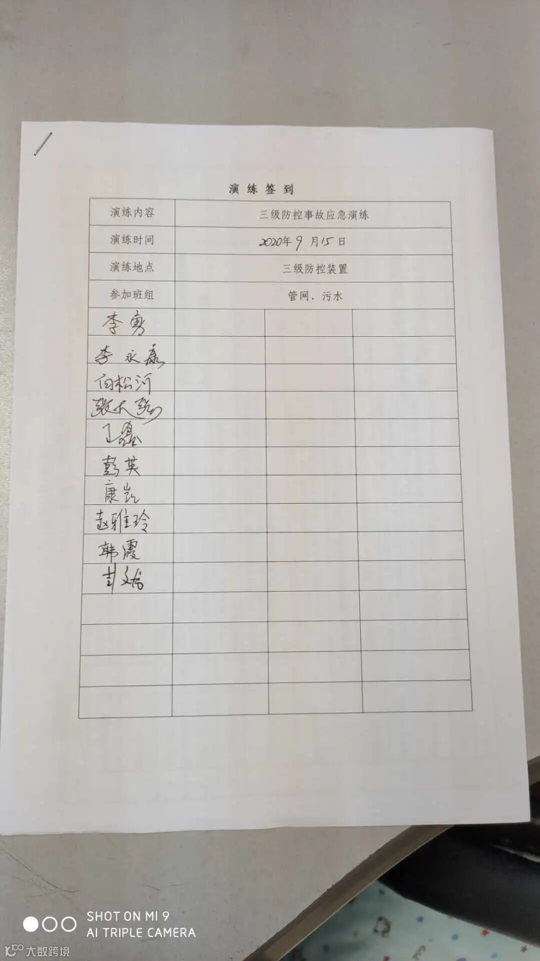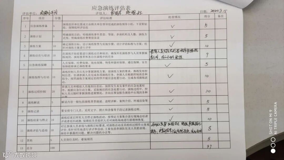 此次演练管网班和污水乙班共10人参加。演练前该车间对参演人进行了应急处置程序培训,设置事故情景,对参演人员进行业务分工。演练过程中参演人员按照应急程序进行应急处理,人员分工明确、行动迅速,能够熟练掌握应急程序并进行现场操作。