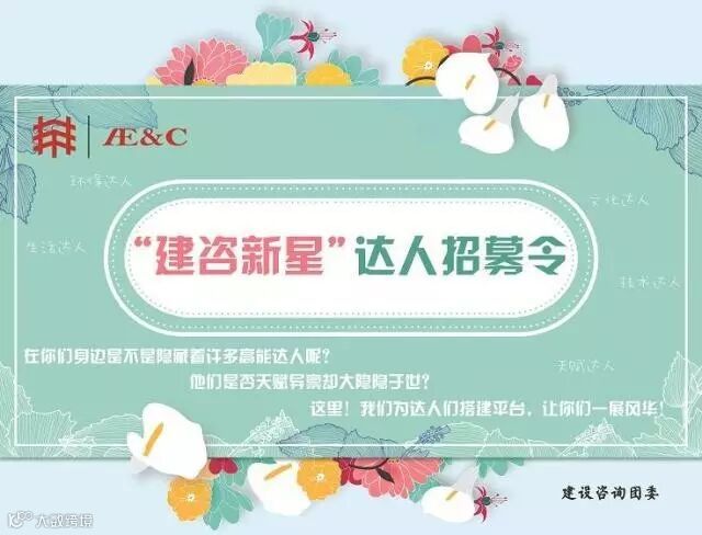 在你们身边是不是隐藏着许多高能达人呢?有人写得一手好字,有人烧得一手好菜,有人绘得一手好画,有木有?亦或者还隐藏着许多隐世高手,未曾出仕?即日起,公司团委向全体青年员工发出招募令,招募“建咨新星达”人,此次达人招募共分为五大项:生活达人、文化达人、技术达人、环保达人、天赋达人。