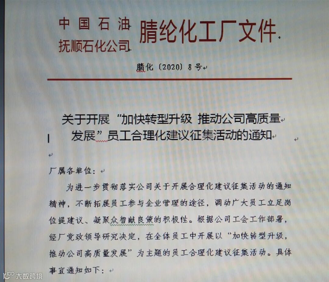截止目前,已征集安全环保、生产优化、降本增效,设备管理等方面的56项有价值建议,51项建议完成车间初审,征集建议成果4项。