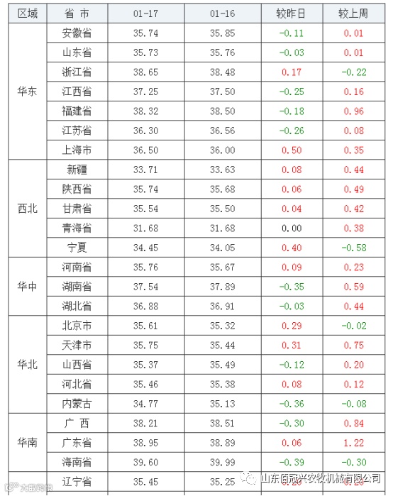 今日生猪价格外三元均价为36.54元/千克,价格较昨日下跌0.13元;内三元均价为36.13元/千克,价格较昨日下跌0.13元/千克;土杂猪均价为35.72元/千克,价格较昨日下跌0.11元。全国市场只有辽宁、甘肃二地收涨,13个地区下跌,13个地区收平。