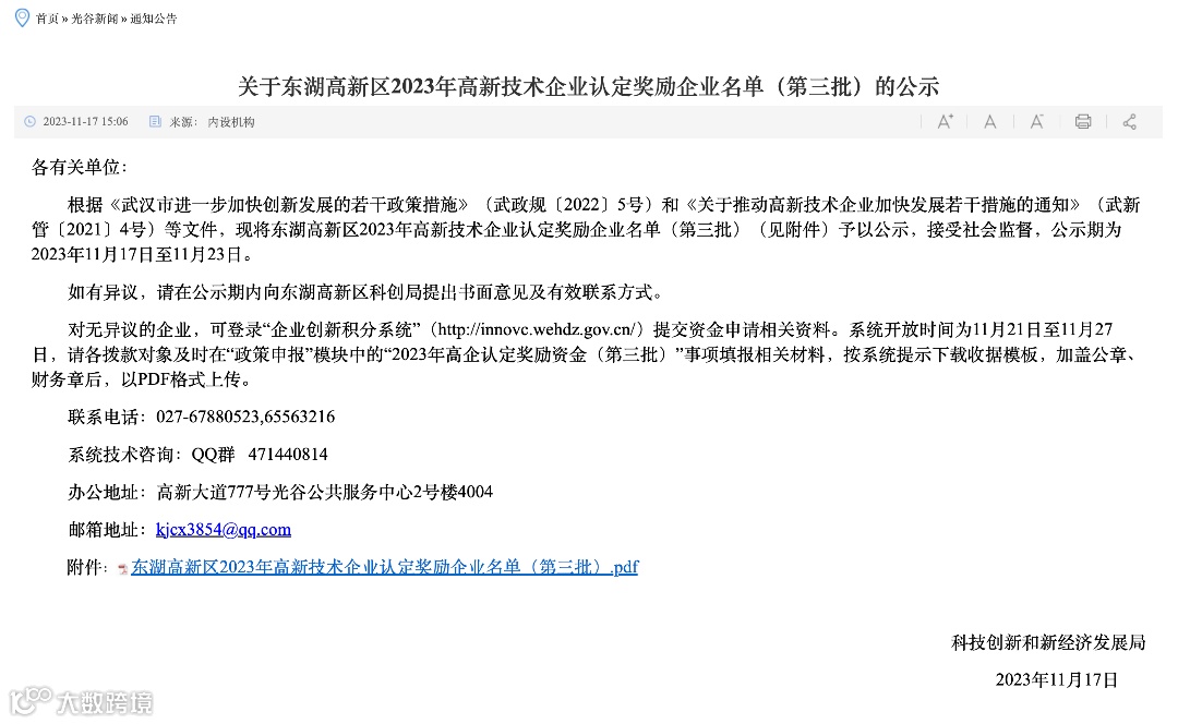 7月30日,东湖新技术开发区科技创新和新经济发展局正式发布了《关于公示2024年度拟认定“光谷瞪羚”企业名单的通知》。