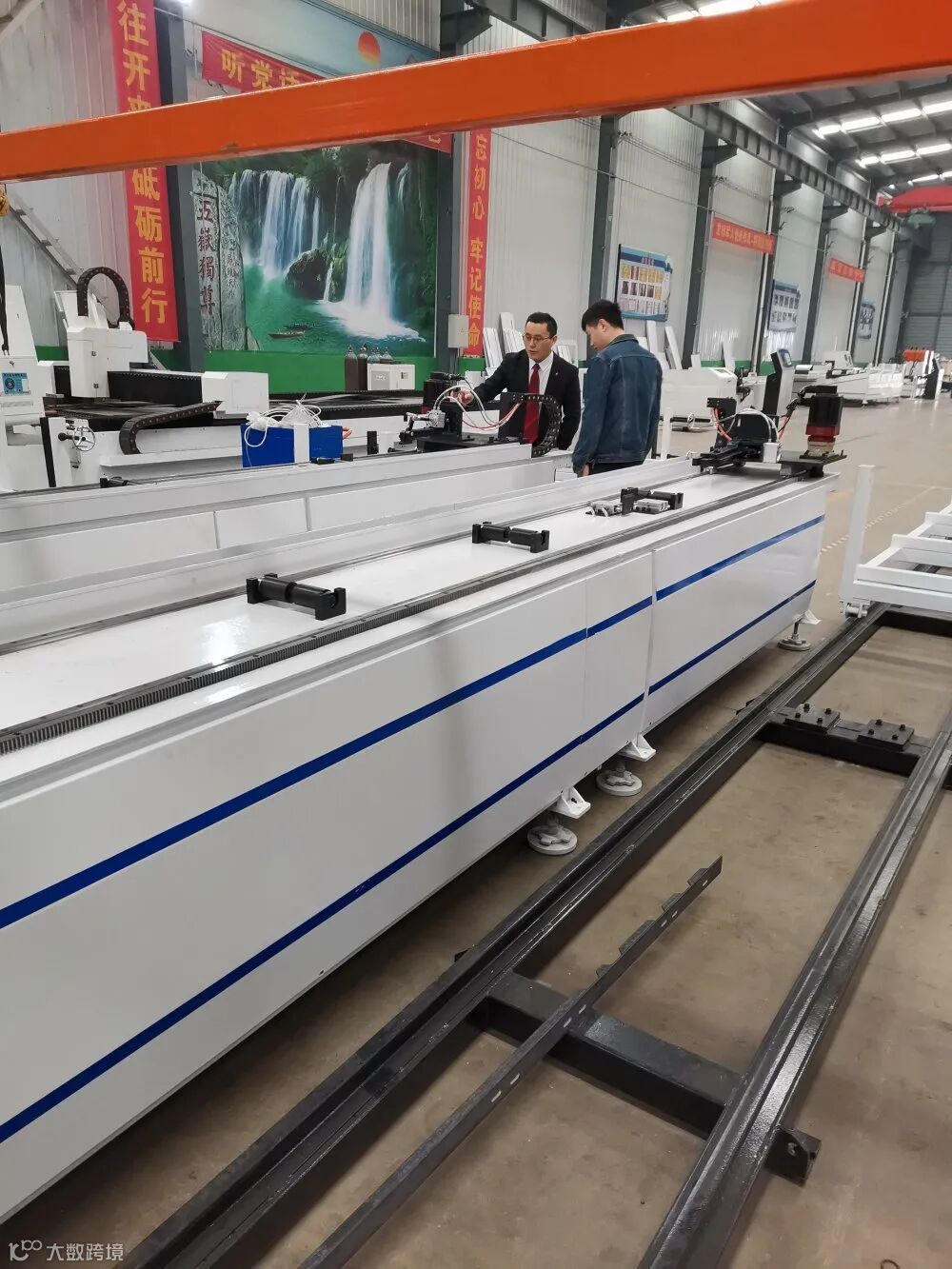 销售总监李经理向客户介绍角钢自动上下料组生产