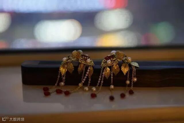 金色的发簪多见于新娘套系,但搭配着红色的裙子也是一种不错的选择。这两个发簪在日常发簪中属于较为隆重的,但白色的珍珠在其中压了一把,增添了簪子的灵动。搭配色系:红色