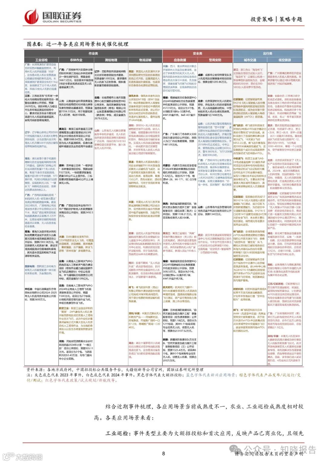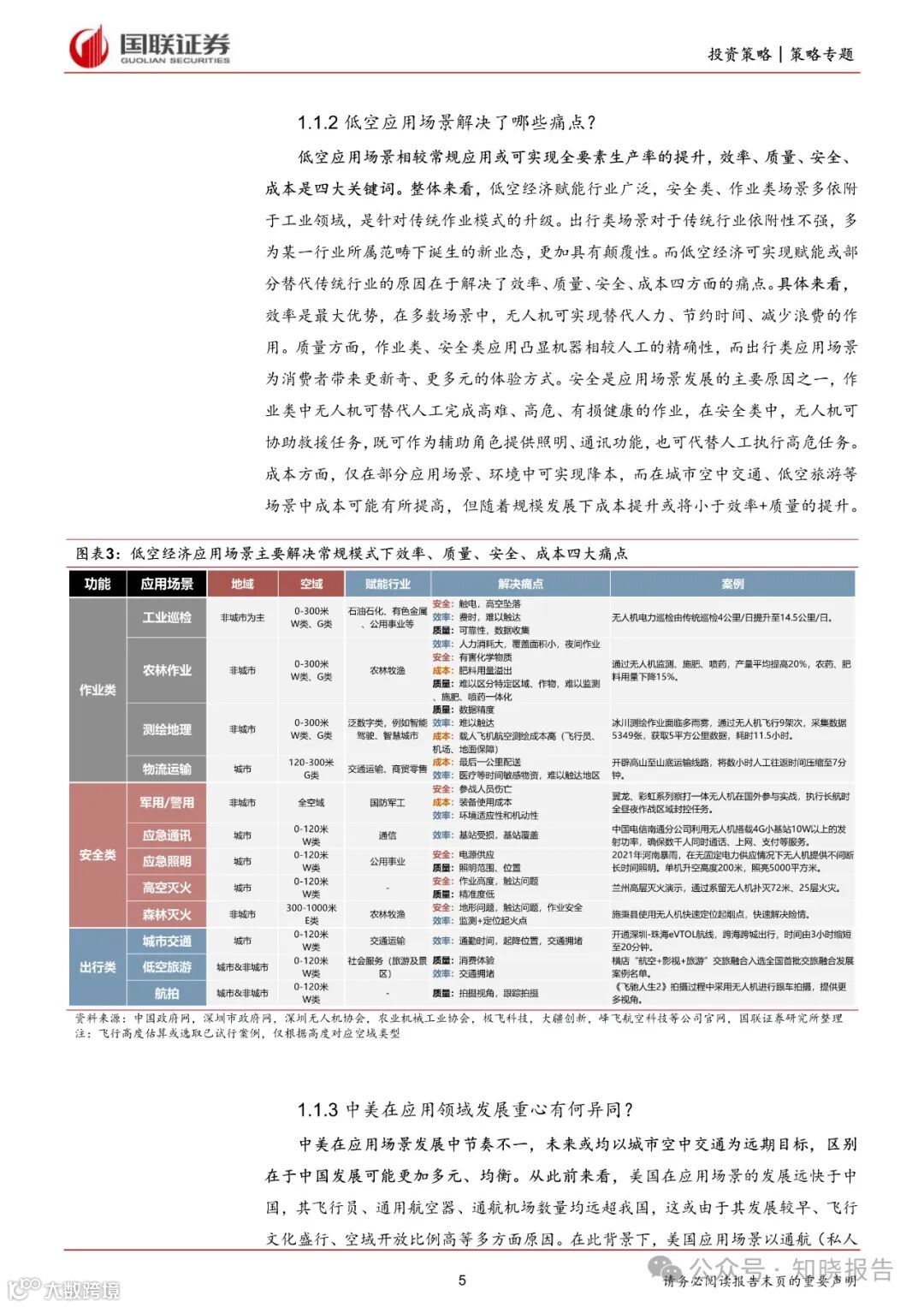 从飞行模式区分,可包括载人运输、载货运输和生产作业类;从功能区分,可包括作业类、安全类、出行类三大场景。我们认为从功能视角出发可更好区分各类应用场景的特征,同时便于进行进一步研究分析。