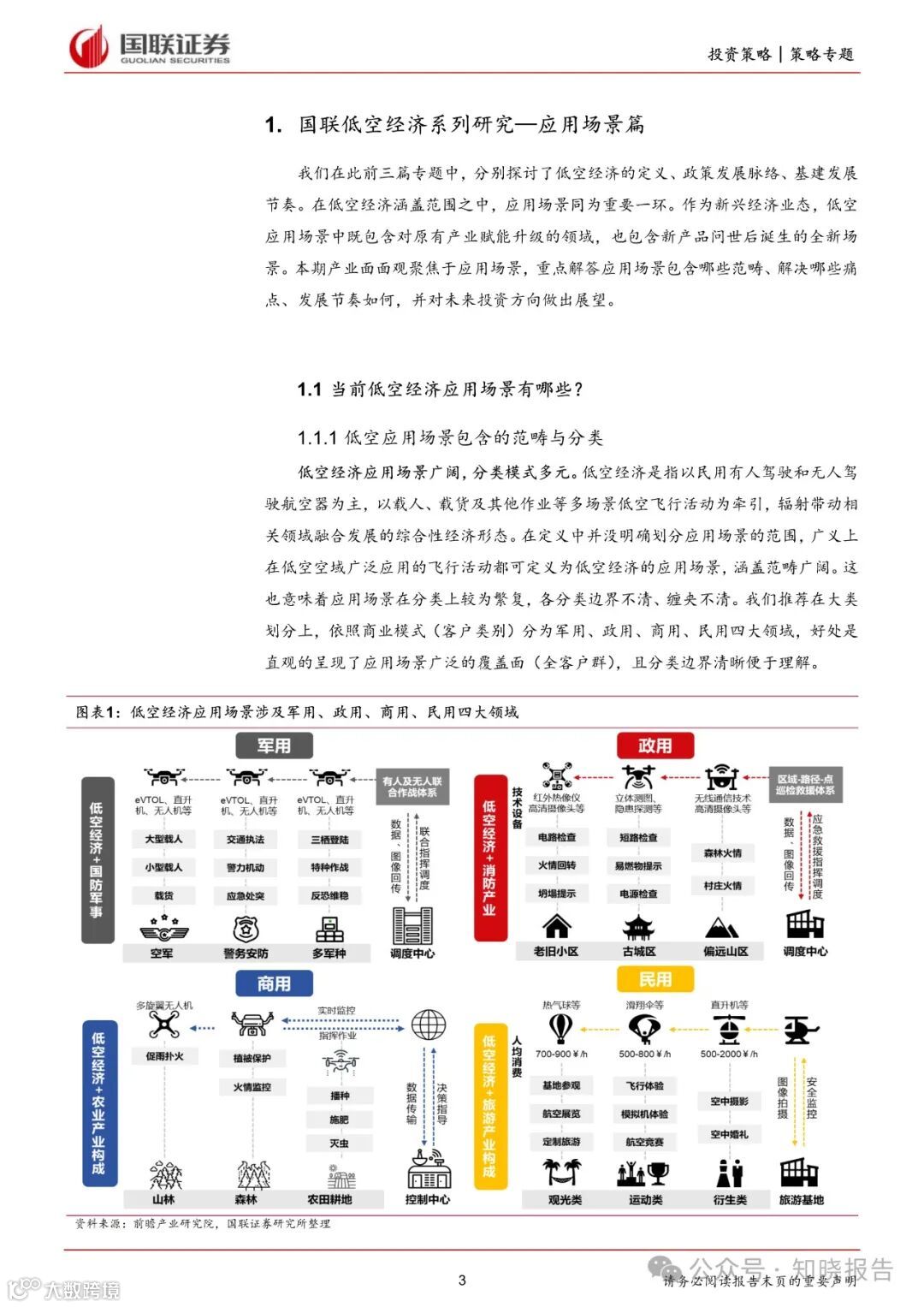 低空经济应用场景广阔,分类模式多元。从商业模式或客户类别区分,可包括军用、政用、商用、民用四大类;
