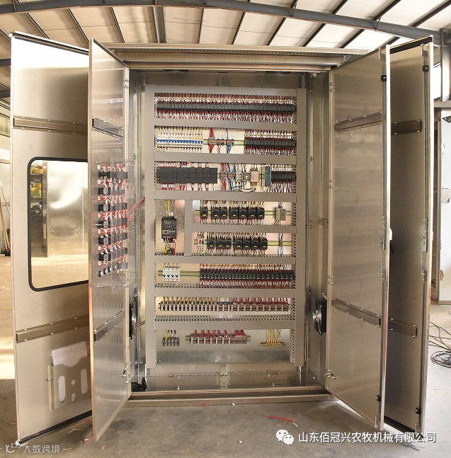 Plc电控箱可以将每个单元的主机和料线传感器直接接入总箱,实现一个plc电控箱的总控制。Plc电控箱可以分档进行管理,每档有单独的程序和主板控制,每档可管理的单元可以实现自由更换饲料类型以及需要停用的单元输送等。