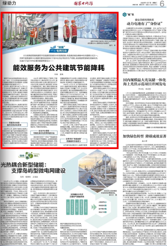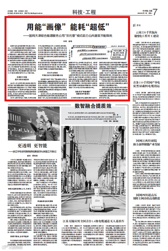 日前,中国电力报、国家电网报等多家媒体报道了题为《用能“画像” 能耗“超低”——国网天津综合能源服务公司“双托管”模式助力公共建筑节能降耗》的文章,文中重点介绍了国网(天津)综合能源服务有限公司在实施技术改造、优化平台管控、完善项目“用能画像”等方面探索“能源资源费用+设备设施运维”双托管模式,助力公共建筑节能降耗。
