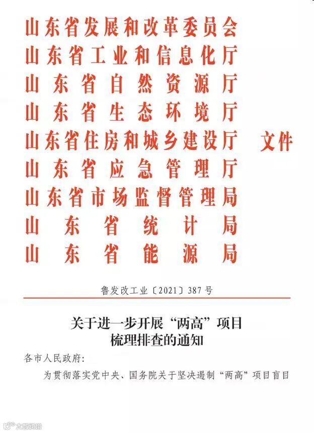 导读:近日,山东省发展改革委、山东省工信厅等9部门发布《关于进一步开展“两高”项目梳理排查的通知》)(鲁发改工业[