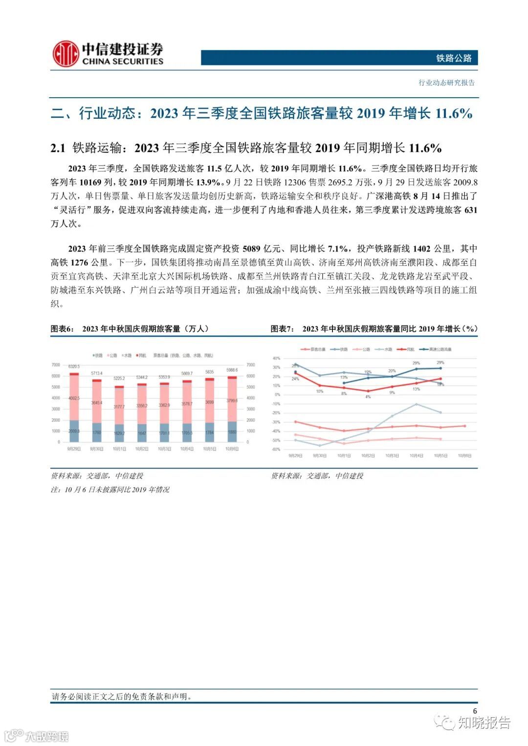 2023年三季度,全国铁路发送旅客11.5亿人次,较2019年同期增长11.6%。三季度全国铁路日均开行旅客列车10169列,较2019年同期增长13.9%。广深港高铁三季度发送跨境旅客631万人次。