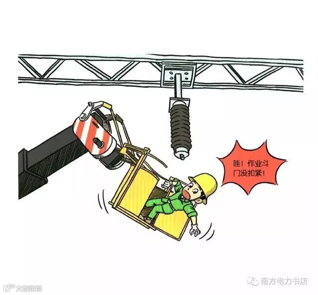 使用高架车斗作业时,作业斗门未扣紧或保险装置未锁紧。