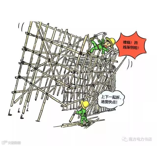 拆除跨越架时采用上下同时拆除或将架体整体推倒。