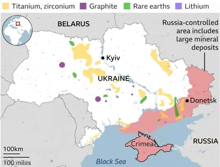 图三、包含钛、锂、稀土等全球大约5%的“关键原料” 蕴藏在乌克兰境内,然而,部分矿区已落入俄军之手。