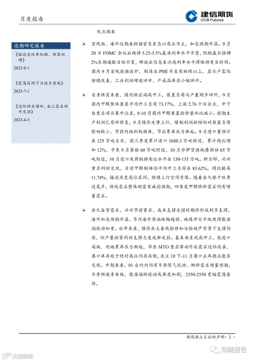 宏观面,海外近期美联储官员表态以鹰派为主,加息预期升温。9 月20 日 FOMC 会议后维持 5.25-5.5%基准利率水平不变,但鲍威尔强调2%长期通胀目标不变,释放出信息表示高利率水平将维持更长时间。国内 9 月宏观数据出炉,制造业 PMI 升至荣枯线以上,显示产需均继续改善,工业利润增速回升,产成品库存小幅回升。