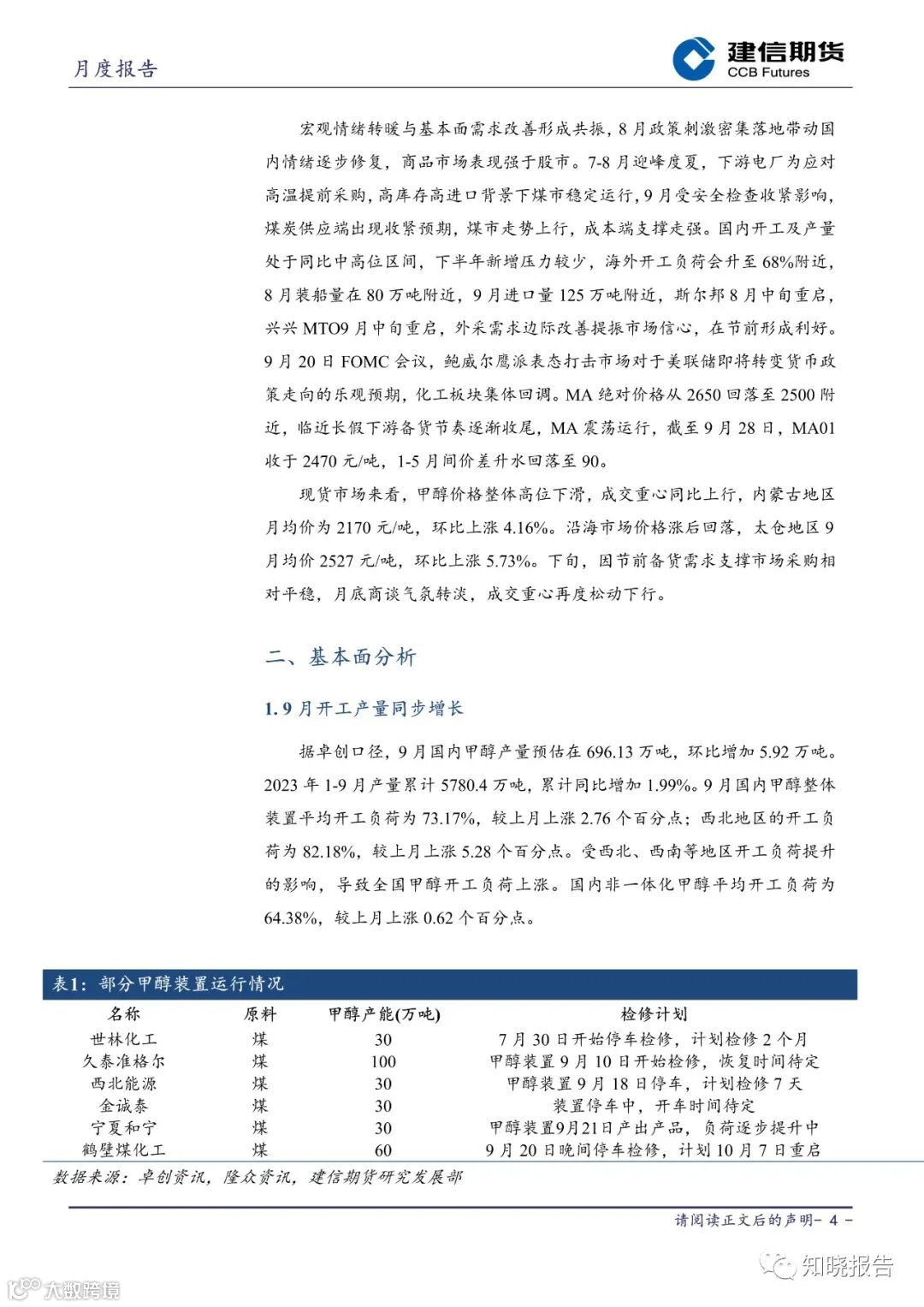 自身供需来看,国内供应端高开工,装置负荷与产量同步回升,9 月国内甲醇整体装置平均开工负荷 73.17%,上涨 2.76 个百分点,中下旬重启项目集中凸显,9-10 月国内甲醇装置检修量环比减小。前期生产利润已有所修复,9 月煤价走势上行,煤制利润收缩但对装置负荷影响较小,节前内地积极排库,节后累库压力渐起。
