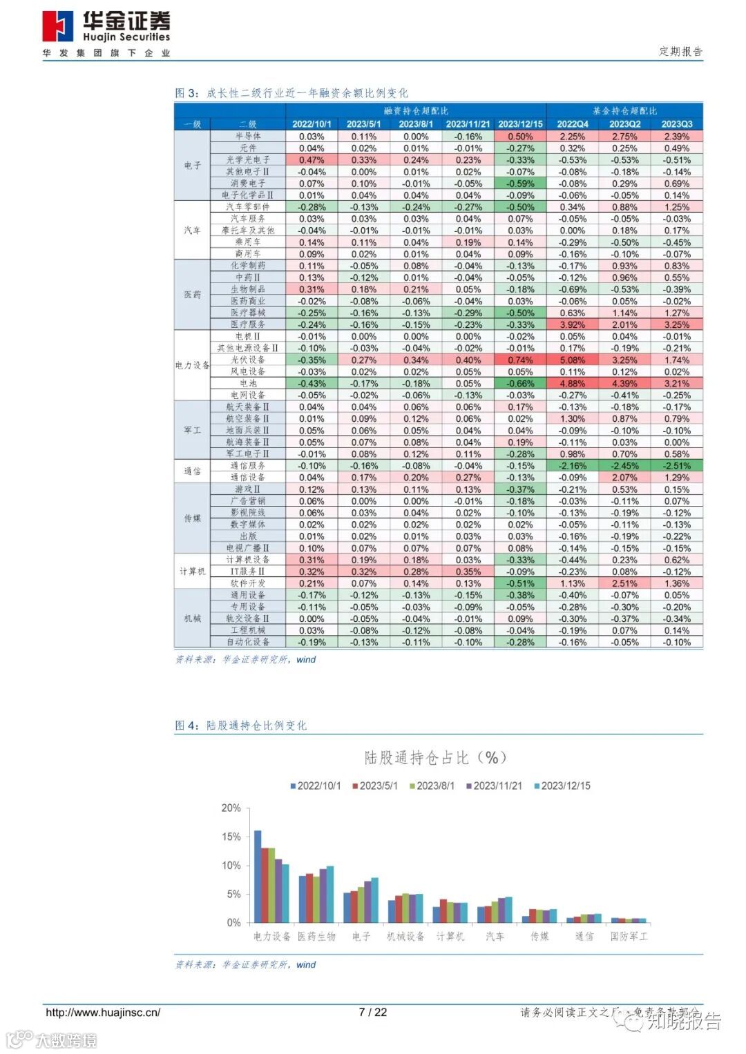持仓上消费电子、商用车、通信服务、生物制品等占优。(1)融资持仓上,汽车服务、商用车、医药商业、航天装备Ⅱ等低位企稳回升,汽车零部件、医疗器械明显低配。(2)陆股通持仓上,电力设备整体持仓占比较高,但有一定下降趋势,医药生物、电子持仓有所上升,汽车和通信仓位偏低。