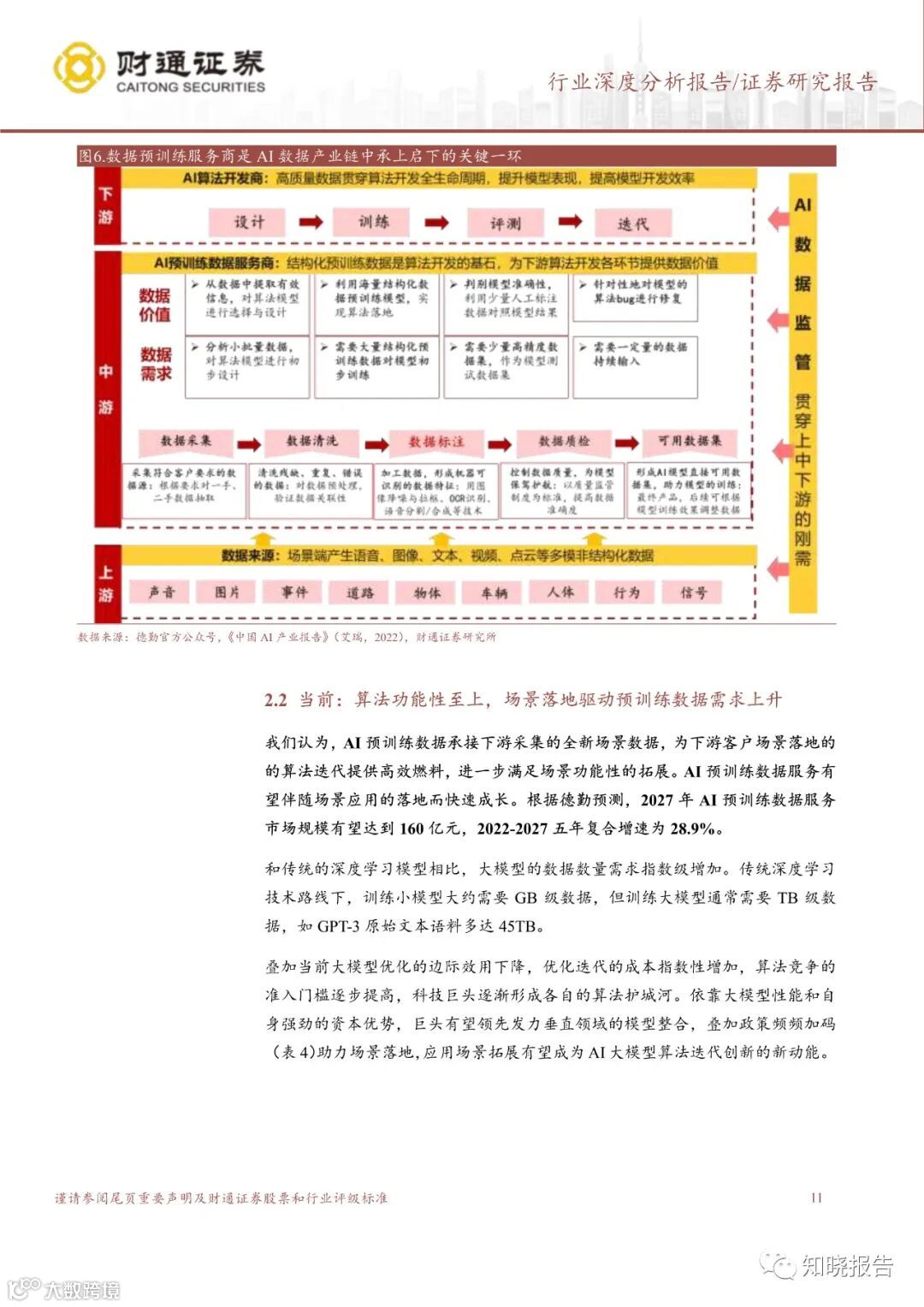 预训练数据需求有望伴随场景应用的落地而快速增长。根据德勤预测,2027 年AI 预训练数据服务的市场规模有望达到 160 亿元,2022-2027 五年复合增速为28.9%。