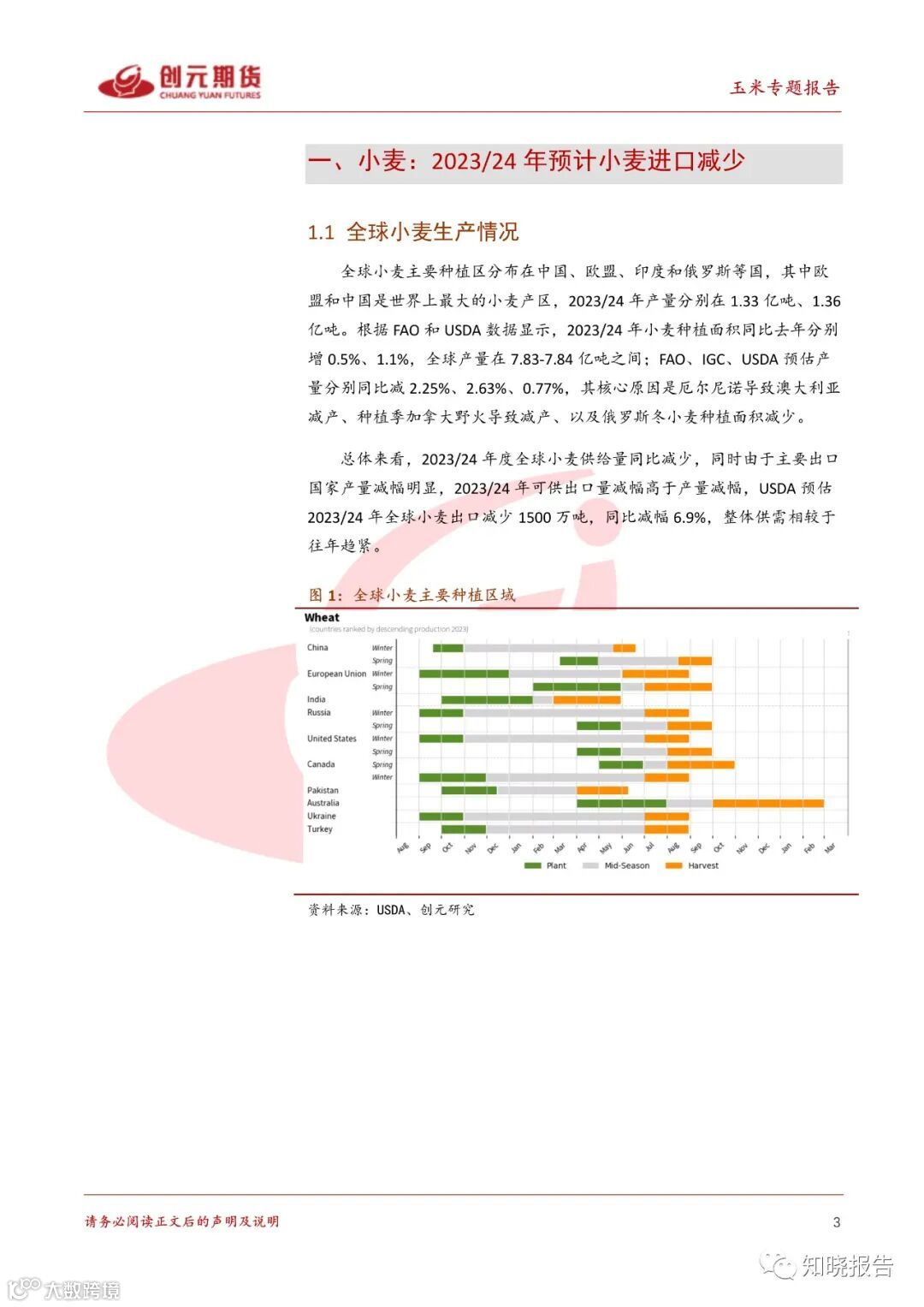 量分别同比减 2.25%、2.63%、0.77%,其核心原因是厄尔尼诺导致澳大利亚减产、种植季加拿大野火导致减产、以及俄罗斯冬小麦种植面积减少。