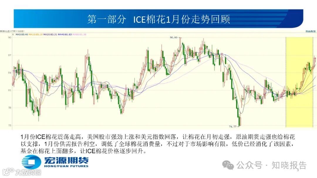 1月份ICE棉花震荡走高,美国股市强劲上涨和美元指数回落,让棉花在月初走强,原油期货走强也给棉花以支撑,1月份供需报告利空,调低了全球棉花消费量,不过对于市场影响有限,低价已经消化了该因素,基金在棉花上面翻多,让ICE棉花价格逐步回升。