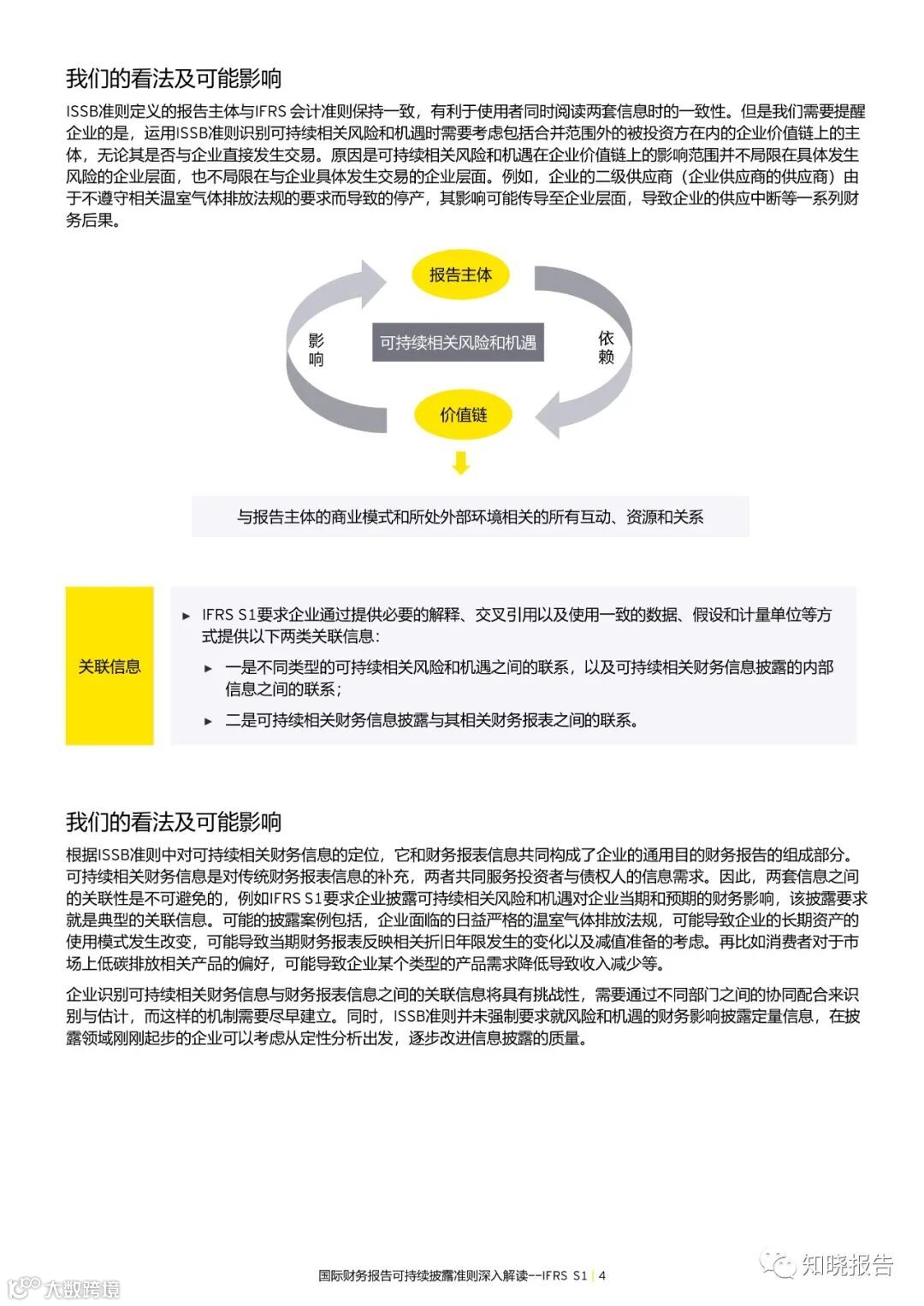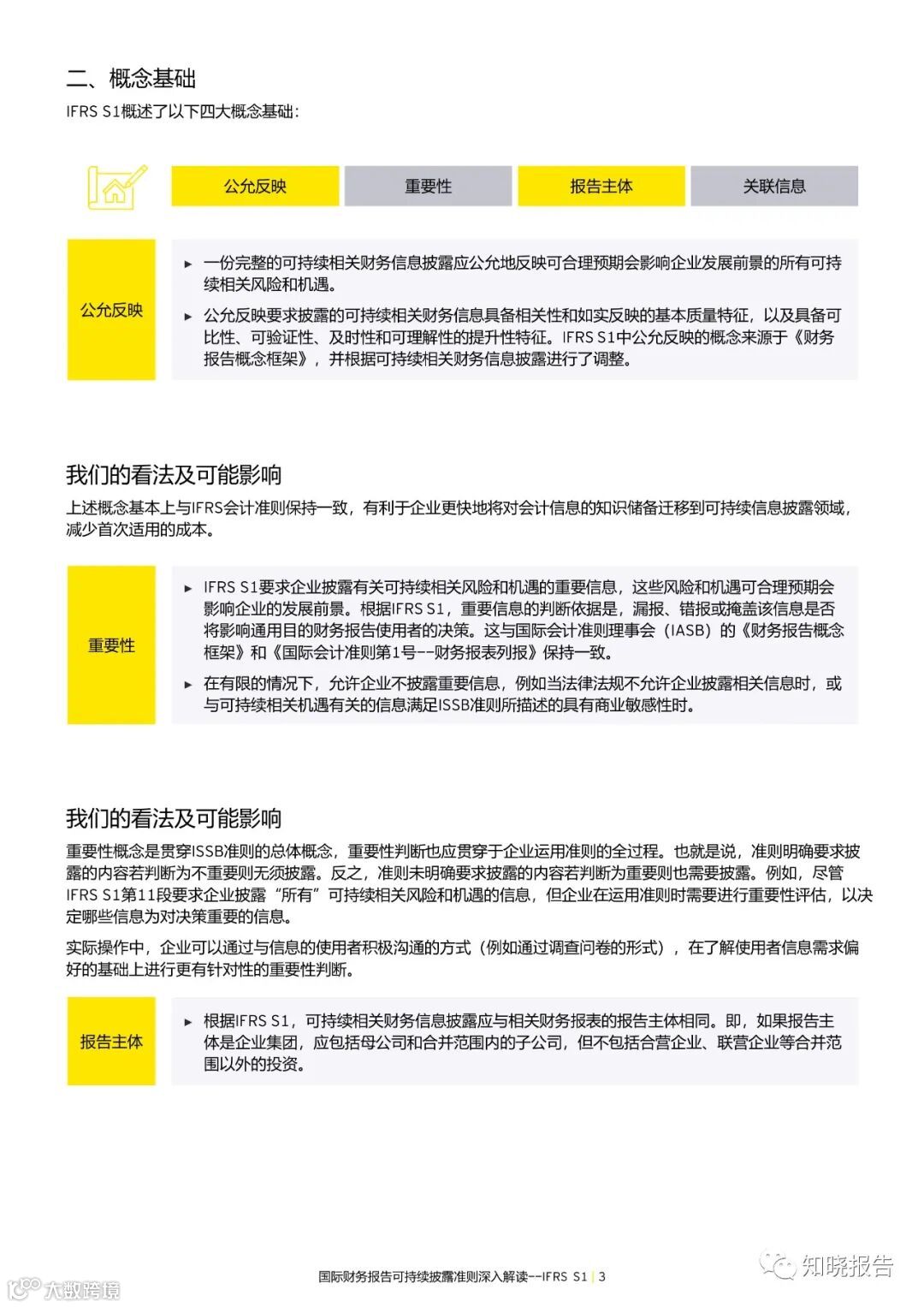 ISSB准则定义的报告主体与IFRS 会计准则保持一致,有利于使用者同时读两套信息时的一致性。但是我们需要提醒企业的是,运用ISSB准则识别可持续相关风险和机遇时需要考虑包括合并范围外的被投资方在内的企业价值链上的主体,无论其是否与企业直接发生交易。