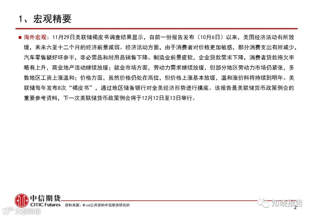 制造业前景疲软,企业贷款需求下降,消费者贷款拖欠率略有上升,商业地产活动继续放缓;就业市场方面,劳动力需求继续放缓,但部分地区劳动力市场仍紧张,多数地区工资上涨温和;价格方面,虽然价格仍处在高位,但价格上涨基本放缓,温和涨价料将持续到明年。