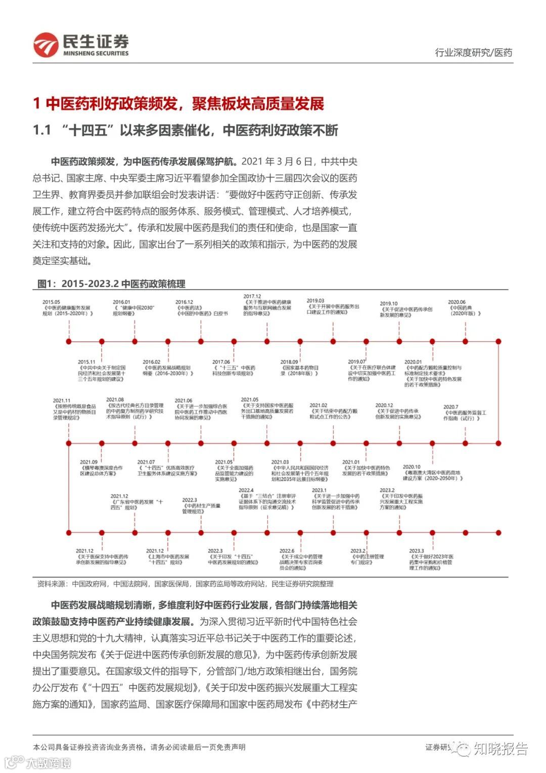 政策持续鼓励支持,中国医药行业进入高质量发展阶段。中医药行业具有独特的疾病防治属性、产业价值和文化属性,在政策支持和国民认可度逐步提高的大环境下,有望逐步实现行业加速成长、市场规模稳步扩张和个股业绩的持续稳健增长,当前正处于中药高质量发展起点。