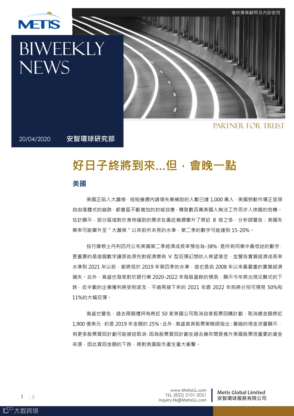 双周报 - 好日子终将到来…但,会晚一点(4月20日) 安智环球