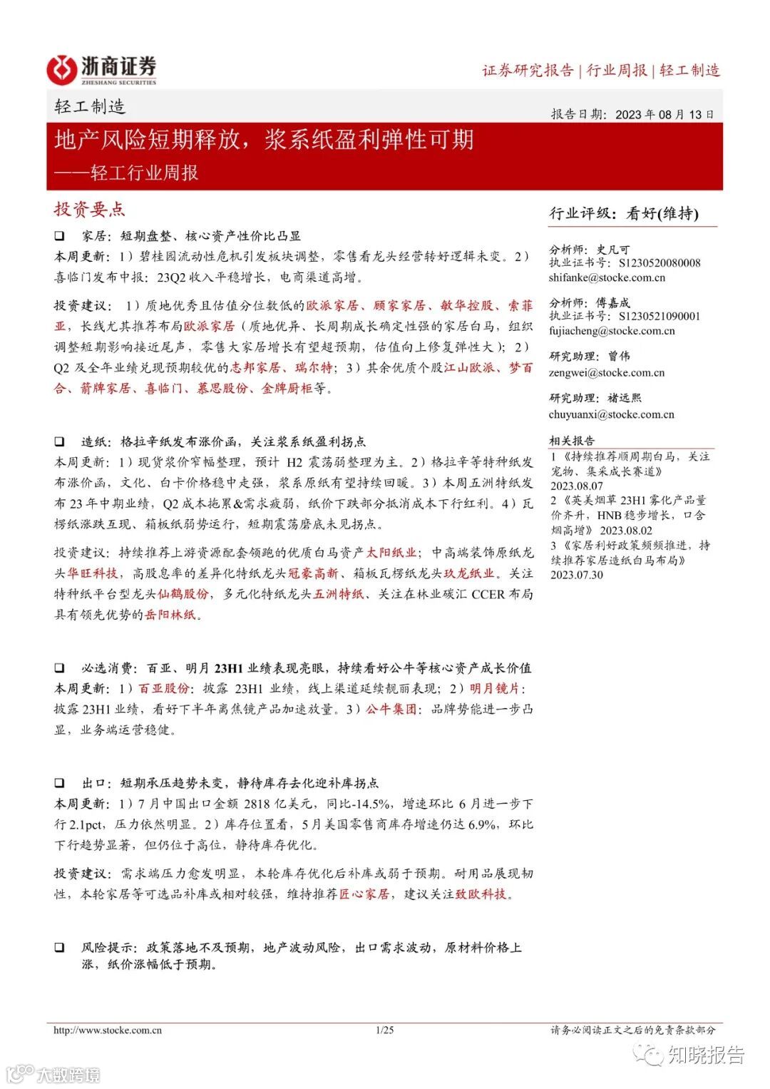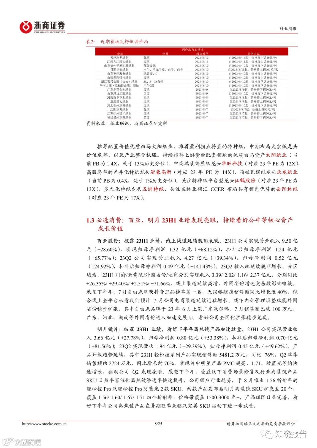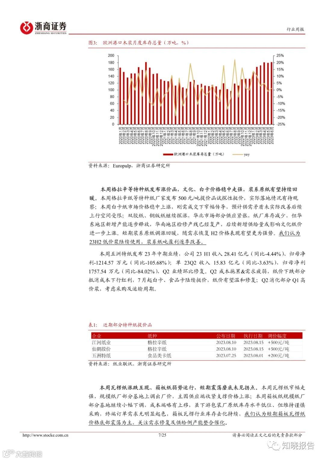3)本周五洲特纸发布23年中期业绩,Q2成本拖累&需求疲弱,纸价下跌部分抵消成本下行红利。