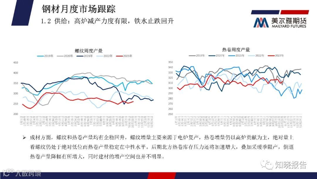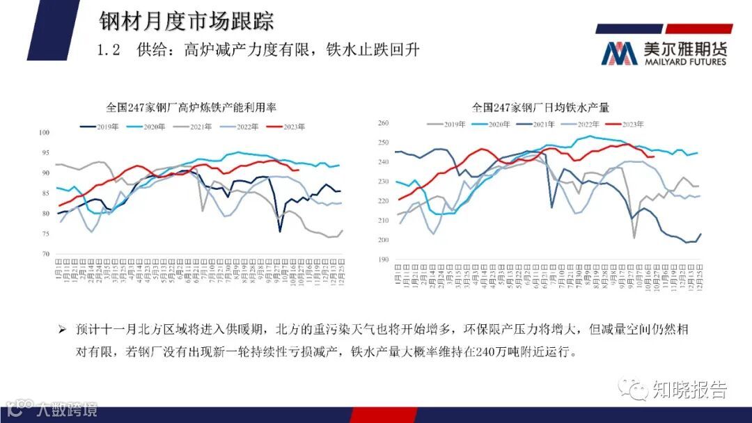 产业来看,铁水产量减量有限,等待验证采暖季减产力度;废钢供应宽松,电炉同步增产;需求偏平,支撑集中在冷轧等品种,月末反弹带动成交修复。综合来看,需求脉冲式修复带动库存去化,负反馈级别非常有限,随着旺季渐进尾声,交易重心重新转向宏观政策预期;后续关注产量刚性造成的供应压力是否增大,以及金融工作会议释放的政策力度。