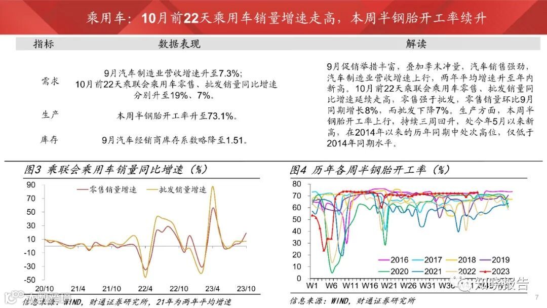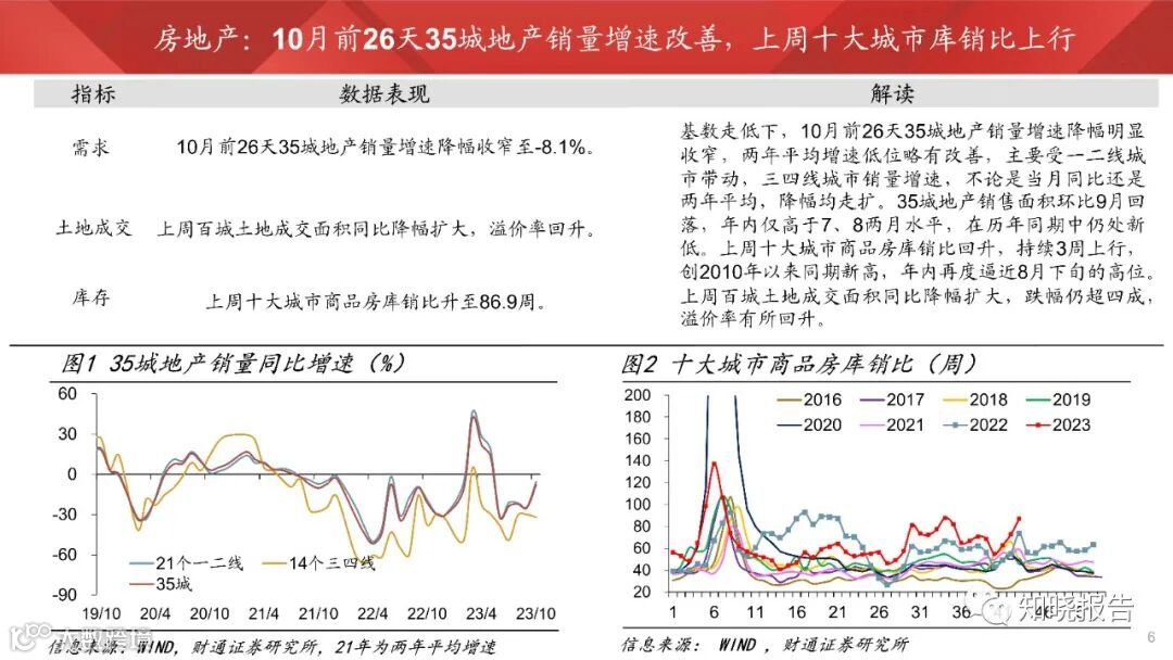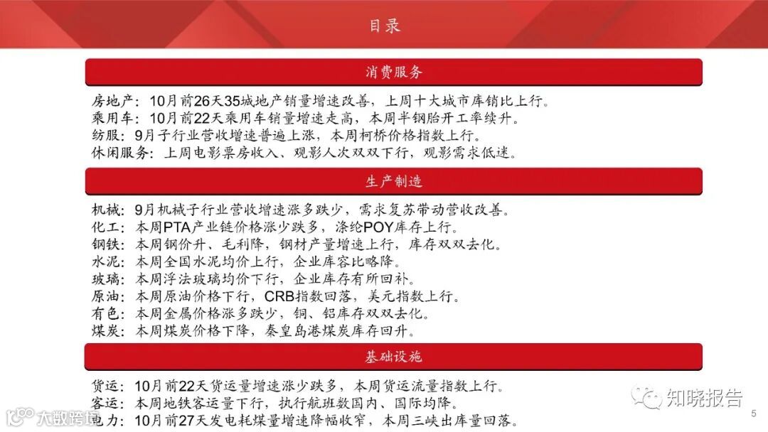 从10月以来的高频数据看,服务业景气支撑消退后,内需依然暂弱。地产、基建景气度不高,35城地产销量增速降幅虽收窄,但绝对销量仍处同期新低,石油沥青装置开工率环比大幅回落,化工、钢铁开工率也有下行。