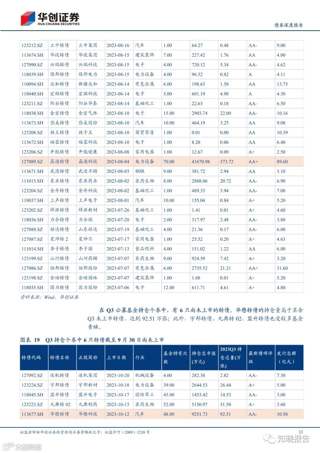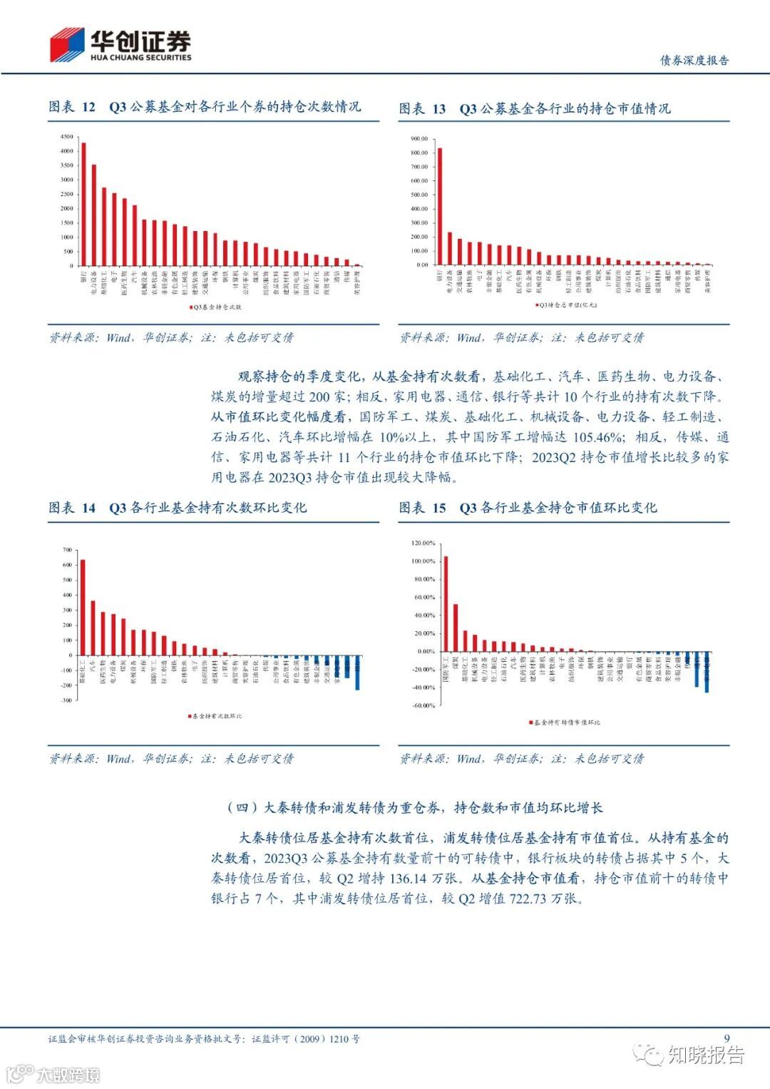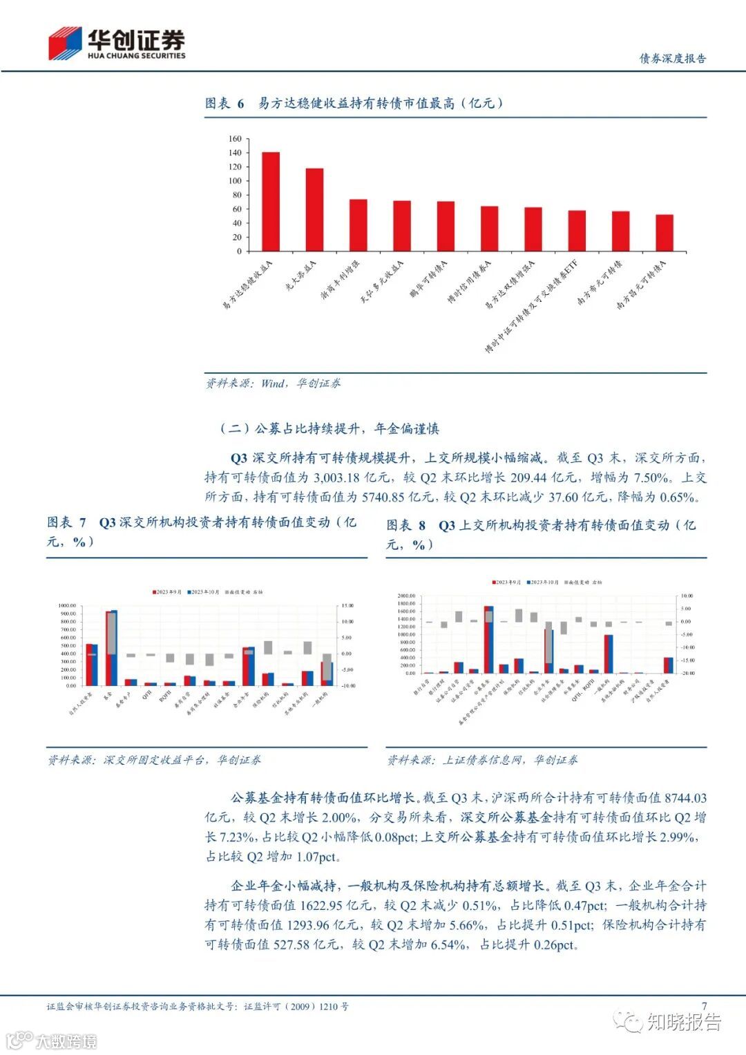 相较于 2023Q2,2023Q3 公募基金的转债仓位提升 0.05pct 至 1.21%,其中股票型基金的转债仓位环比微降 0.01pct,混合型基金环比微升 0.11pct,债券型基金环比微升 0.12ct。具体看债券型基金的细分类型,其中混合二级债基环比增长 0.90pct,可转债基金环比提升 1.35pct,为主要增仓力量,而混合一级债基环比微降 0.08pct。