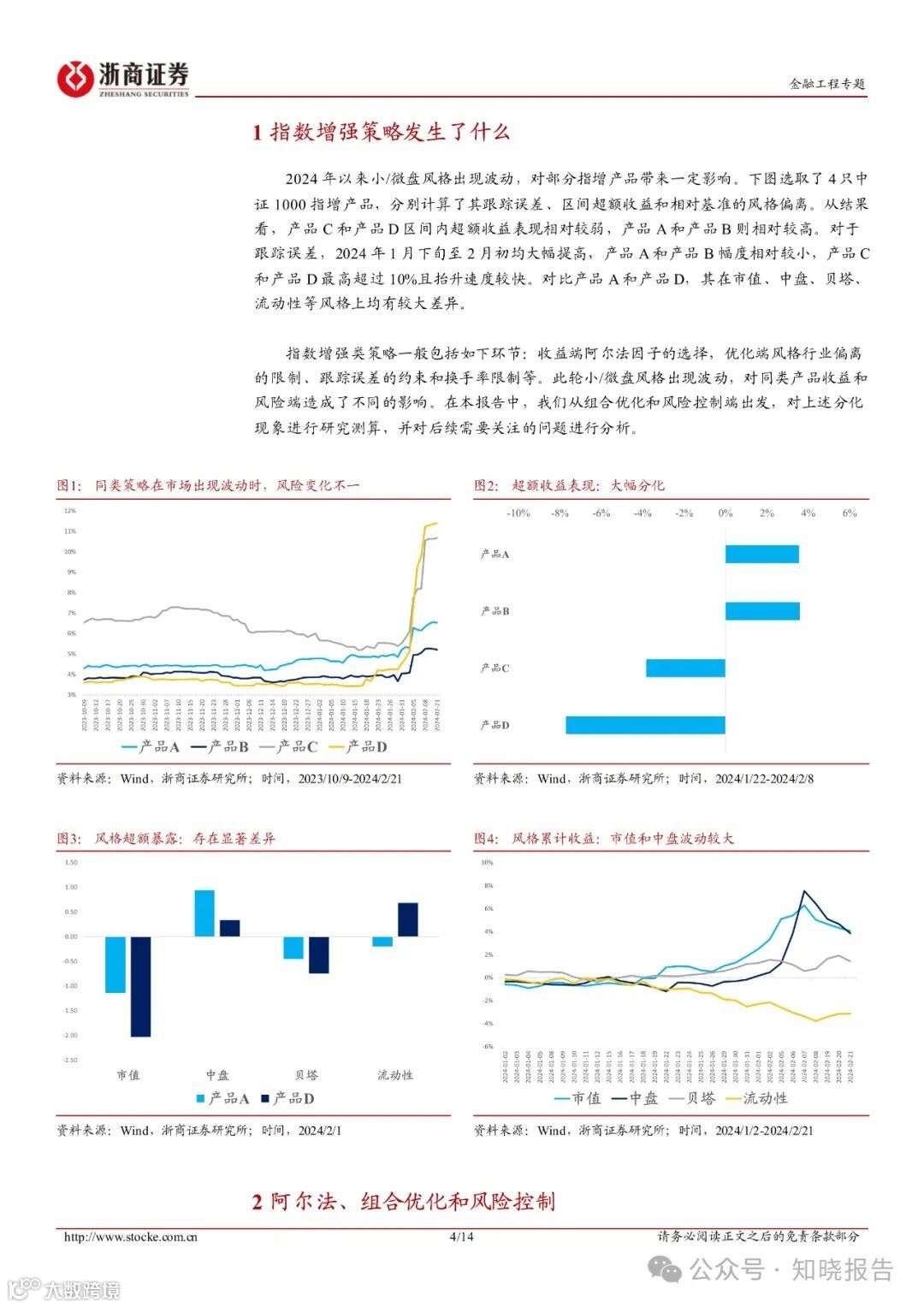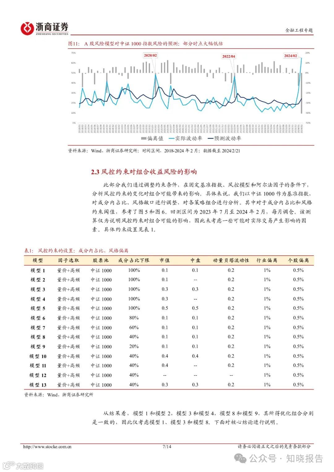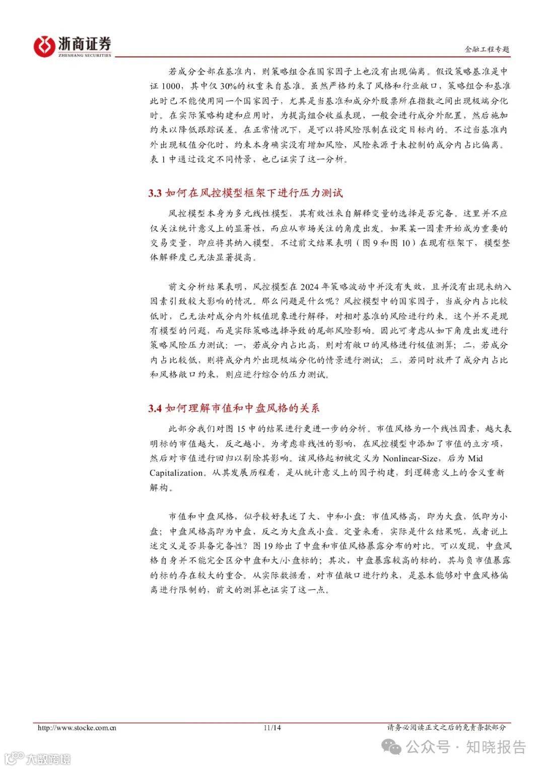 2024 年 1-2 月策略回调中的启示风控模型没有失效,当基准内外出现极值分化时,风险来源于未控制的成分内占比偏离;成分内占比高可对有敞口的风格进行极值测算,若成分内占比较低可对成分内外出现极端分化的情形进行压力测试;对市值敞口进行约束,基本能够对中盘风格偏离进行限制。