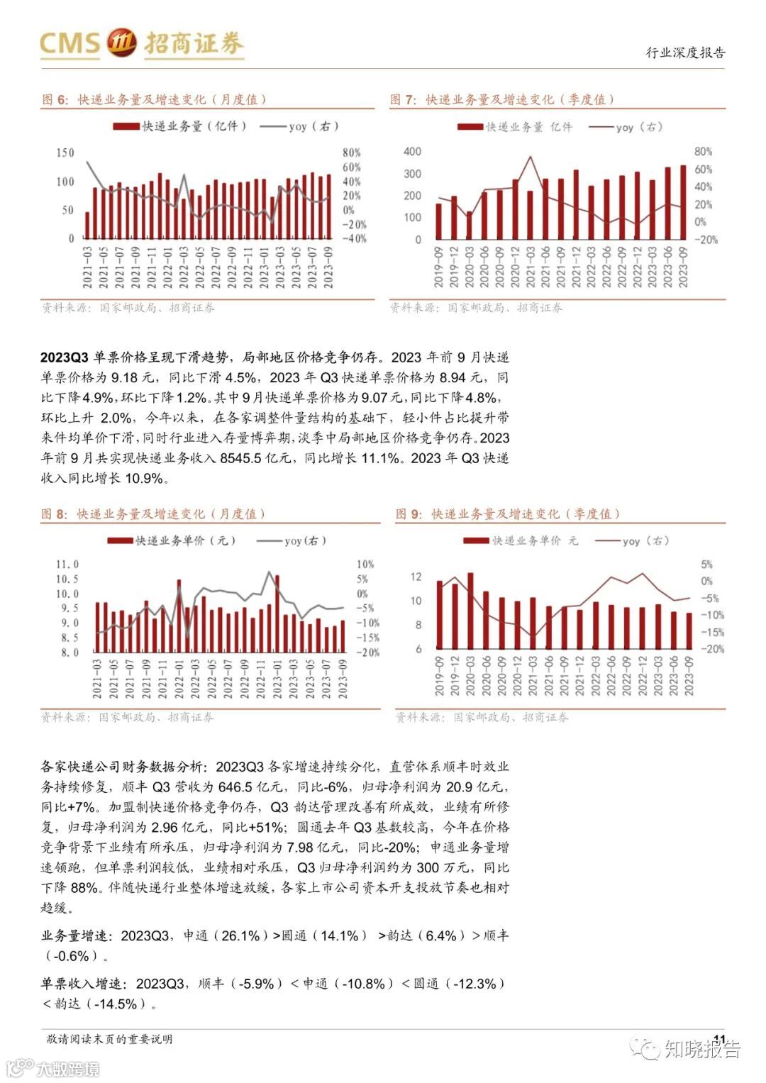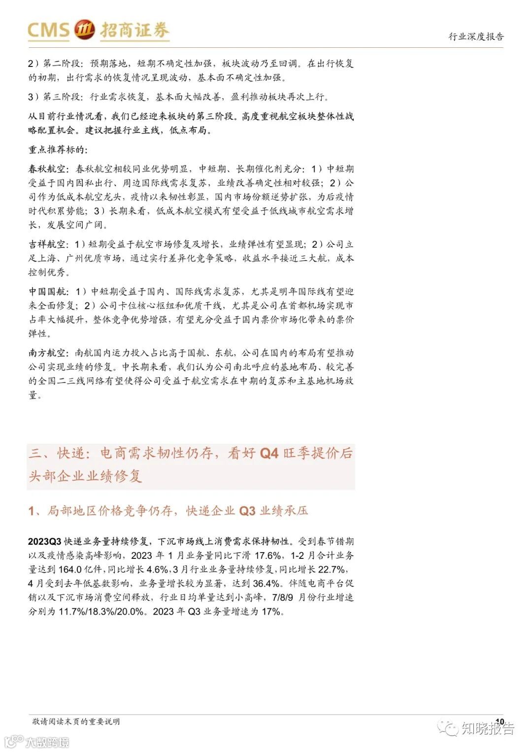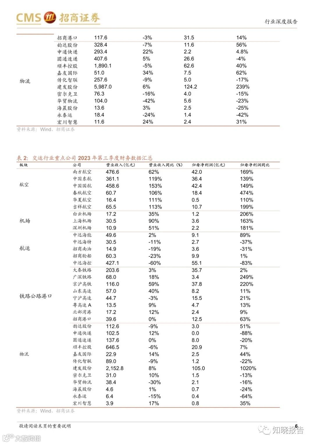 国内国际航空数据修复稳步推进但目前估值处于调整中,23 年航空板块累计跌幅为 20.8%。航运整体市场关注度有所下滑,板块小幅下跌4.2%。目前快递行业局部地区价格竞争仍在持续,物流板块下跌 23.6%。铁路、公路方面,经营数据修复情况较好,且板块防御属性较强,铁路公路板块分别上涨 4.5%、11.5%。