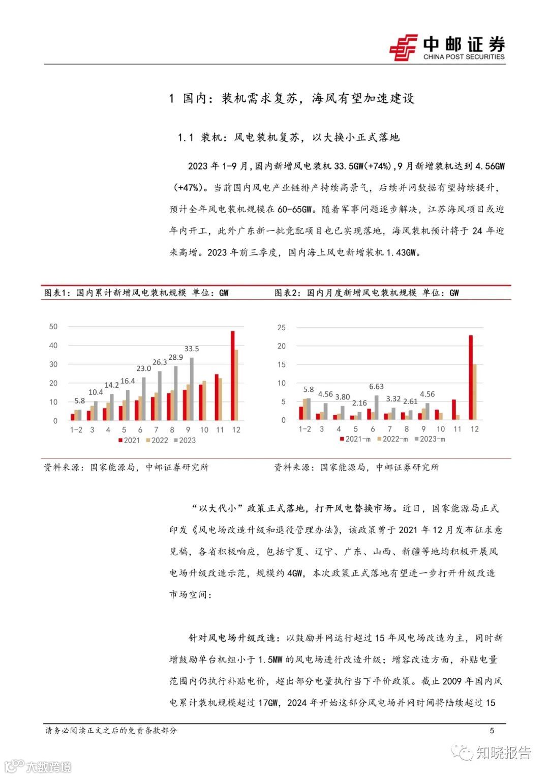 2023 年 1-9 月,国内新增风电装机 33.5GW(+74%),其中海风装机 1.43GW,9 月新增装机达到 4.56GW(+47%)。当前国内风电产业链排产高景气,后续并网数据有望持续提升,预计全年风电装机规模在60-65GW。随着军事问题逐步解决,江苏海风项目或迎年内开工,此外广东新一批竞配项目也已落地,海风建设预计 24 年迎来高增。