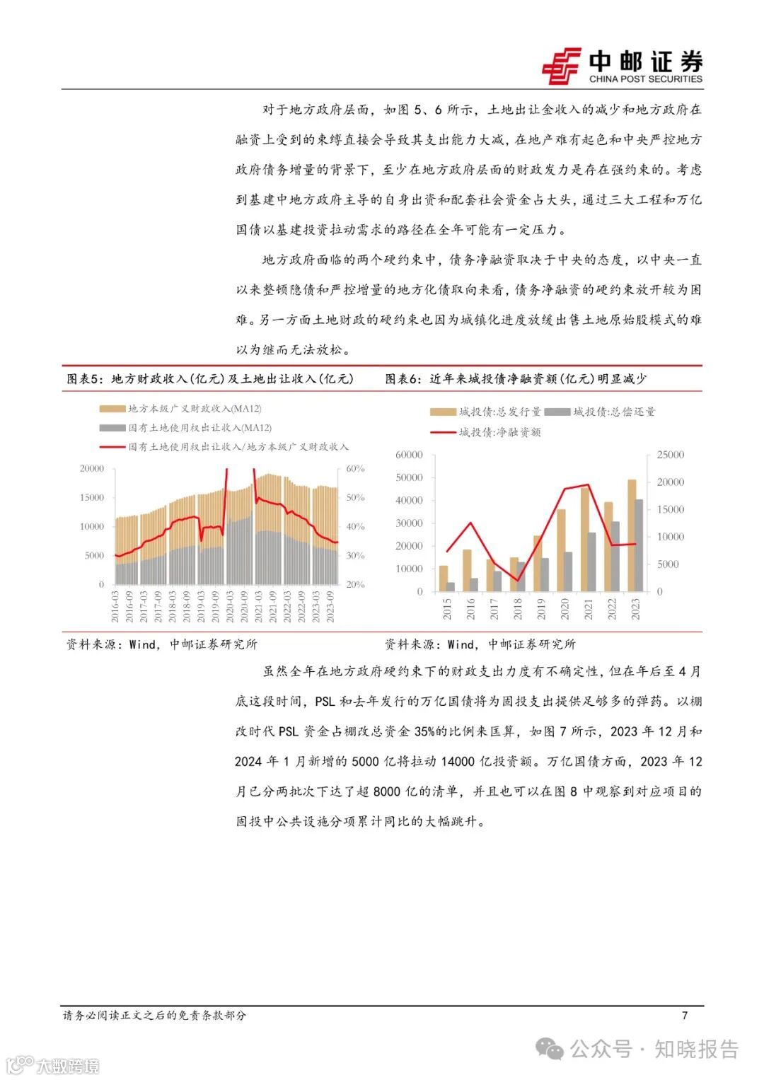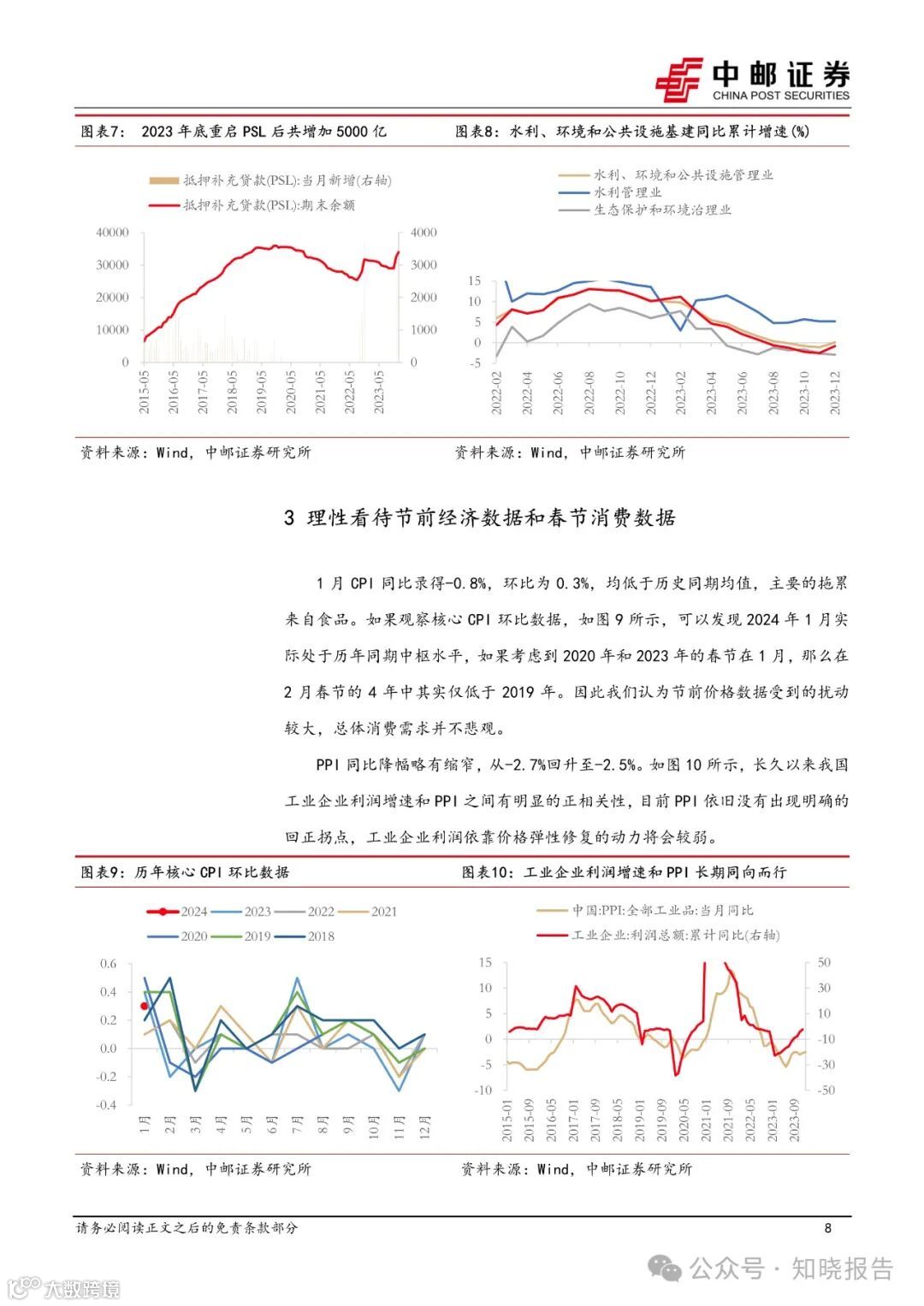 以此来看,2024 年全国的经济目标应该在 5%左右。虽然全年在地方政府硬约束下的财政支出力度有不确定性,但在年后至 4 月底这段时间,PSL 和去年发行的万亿国债将为固投支出提供足够多的弹药。