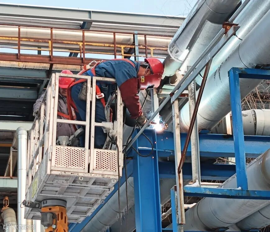 施工人员严格落实安全措施,合理设置吊装工装,用1吨导链将管线提高120毫米,将100毫米管托插入管线底部,并与管线断续焊接,凭借专业技能与专注态度,克服困难、胆大心细、笃行实干。