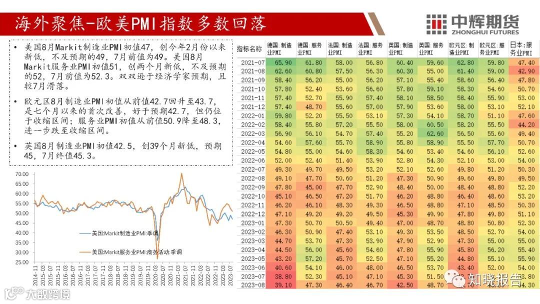 【海外宏观】海外PMI服务业和制造业多下跌,但是就业强劲、工业有韧性。主要央行态度偏鹰。