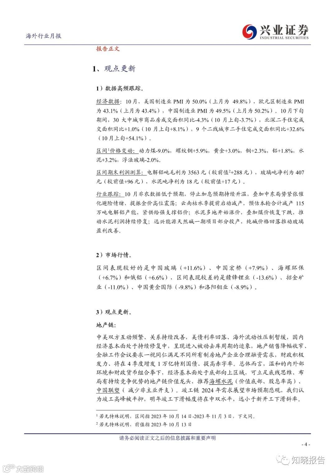 总体而言,温和的内外部环境和财政货币组合拳下,经济基本面处于底部向上区域,可立足底线思维、布局有持续竞争优势的地产链价值龙头,推荐海螺水泥、中国联塑。竣工链 2024 年需求展望市场预期悲观,我们认为竣工高峰被平抑,明年竣工下滑幅度将在中双水平,远小于新开工下滑斜率。