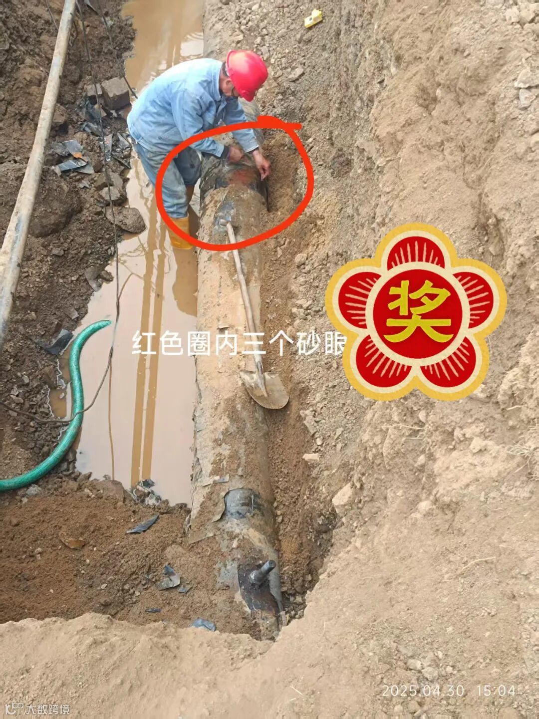 4月10日,在丁烯装置南侧回用水一循发现较大漏点1个。
