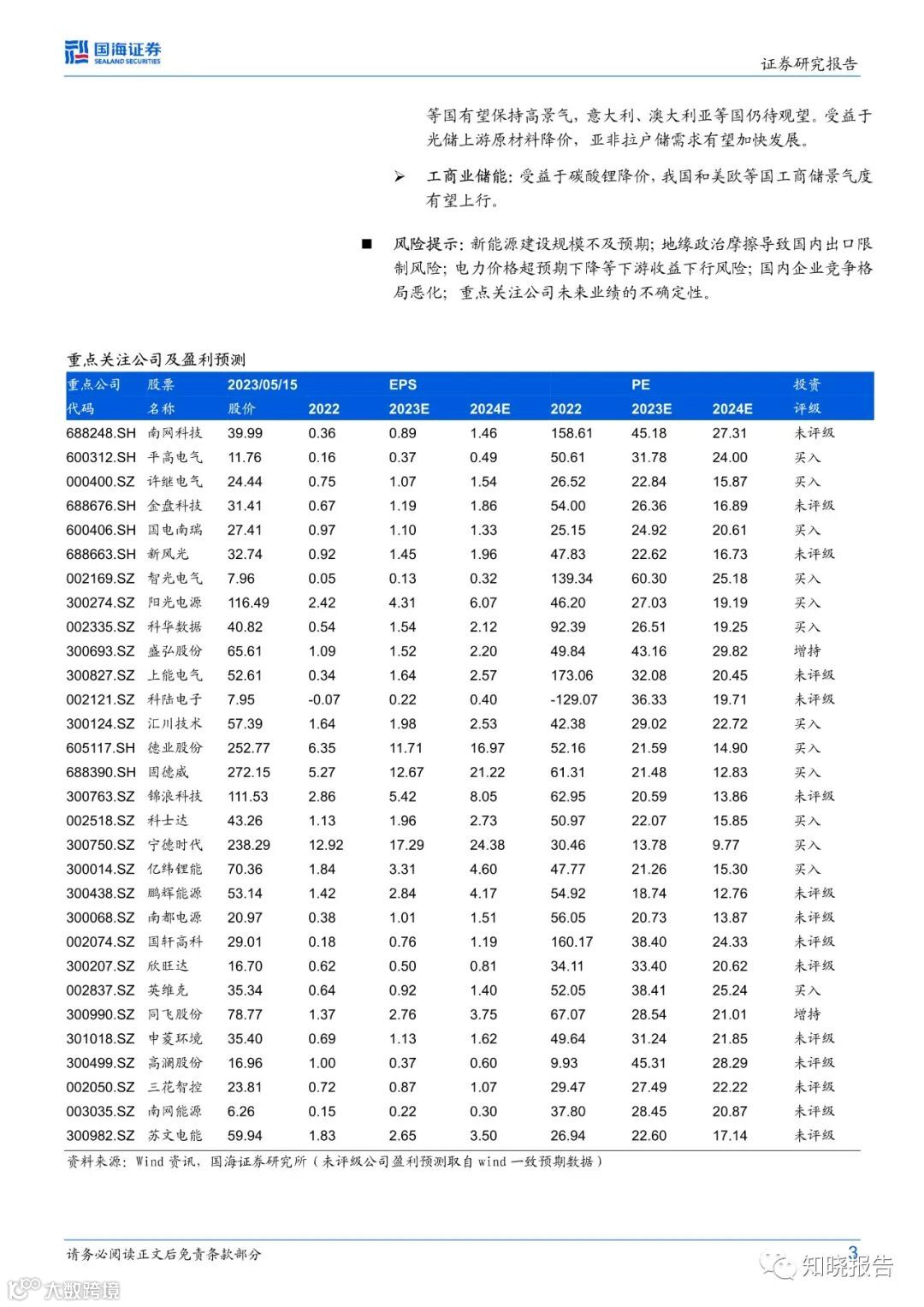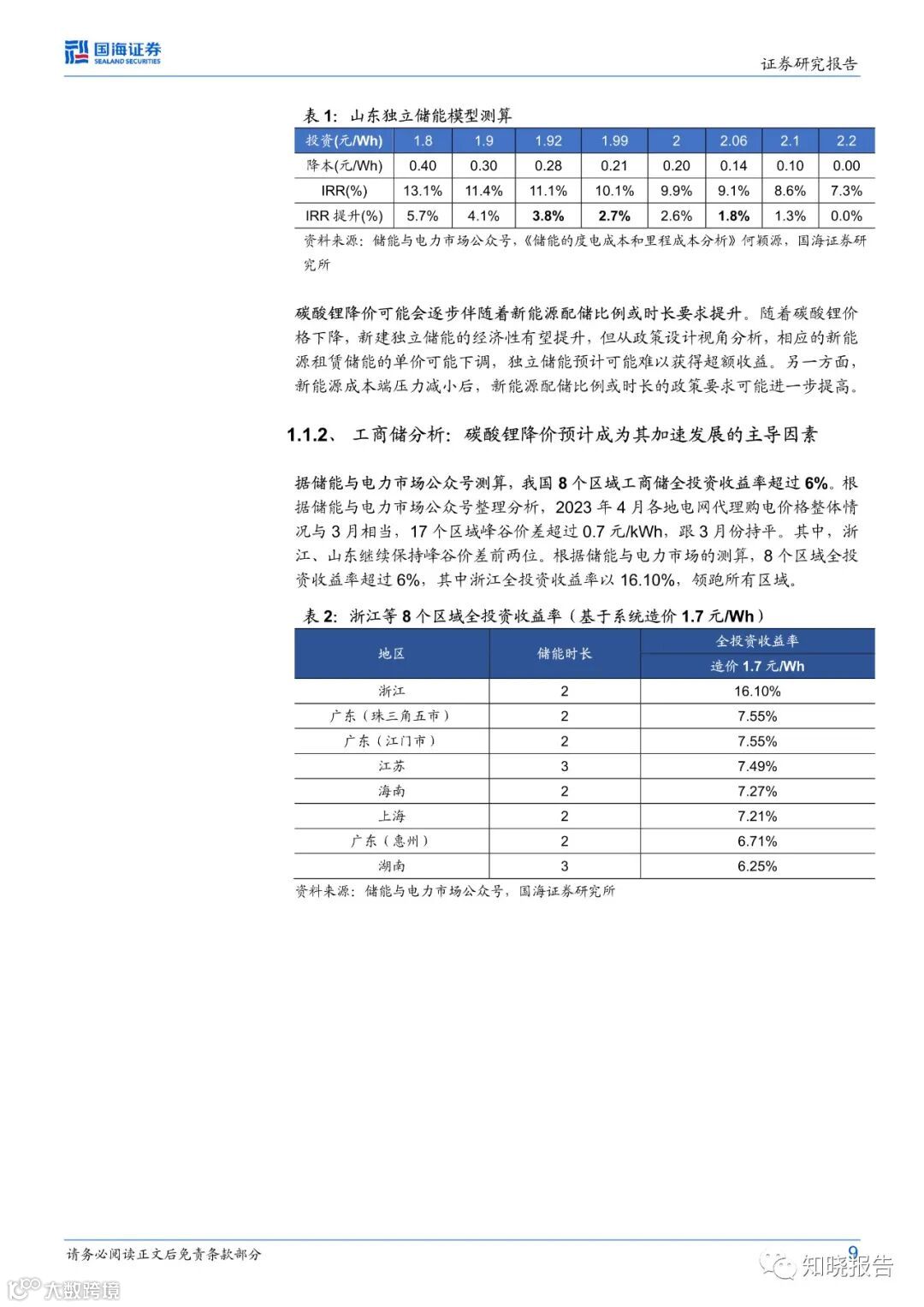 工商业储能:经济性方面,据储能与电力市场公众号测算,2023年4月我国8个区域工商储全投资收益率超过6%。主导因素分析方面,我们认为主导因素预计逐步转变为成本端的储能系统降本,而不是收益端的峰谷价差拉大。发展区域方面,由于电力供需偏紧,预计湖南、安徽、重庆等中部地区的工商储可能类似沿海地区有望加快发展。