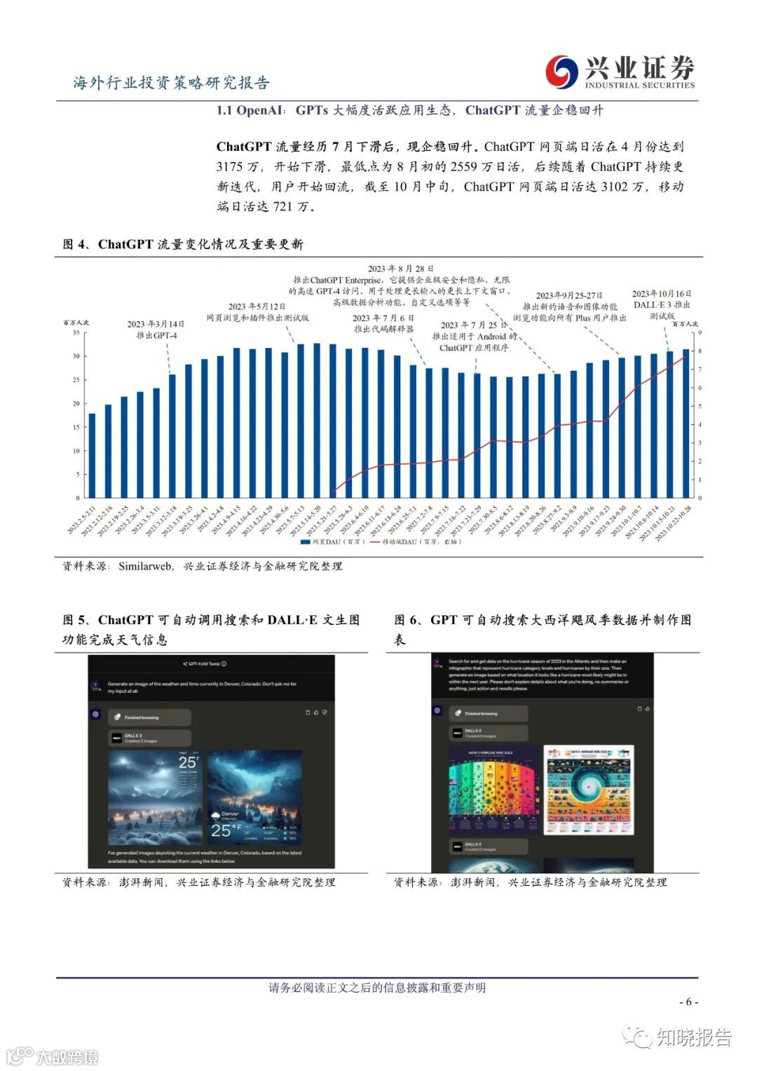 海外流量重拾增长态势,2024 年将有更多重磅大模型推出。OpenAI: ChatGPT在三季度历经流量下滑,随着功能优化与多模态场景,流量企稳回升,截至10 月中旬,ChatGPT 网页端日活达 3102 万,移动端日活达 721 万。