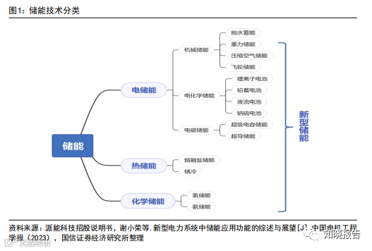 按照存储介质的不同,储能技术可划 分为电储能、热储能、化学储能等。新型储能则是指除抽水蓄能以外的储能技术, 主要包括锂电池储能、压缩空气储能、飞轮储能、液流电池、氢(氨)储能等。相对于抽水蓄能,新型储能具有建设周期短、选址灵活、响应快速、调节能力强 等优势,能够为电力系统提供多时间尺度、全过程的调控能力。