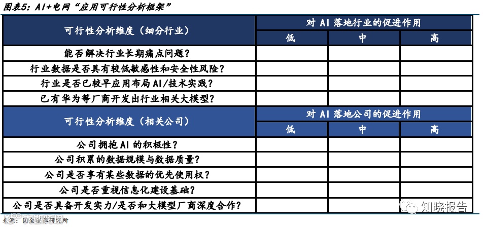 针对电力行业属性,我们提出 AI+电力“应用可行性分析框架”,以多维度的视角,分析 判断 AI 有望最先在哪些细分行业和公司落地。