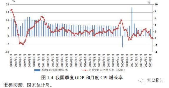国内经济总体回升向好,物价保持平稳。随着经济社会全面恢复常态化运行,稳增长、稳就业、稳物价政策效应逐步显现,市场需求持续 扩大,生产供给稳步增加,国民经济恢复向好。据国家统计局初步核算, 2023 年上半年国内生产总值(GDP)为 59.3 万亿元,按不变价格计算, 同比增长 5.5%,在全球范围内属于较快增速,其中二季度 GDP 同比增 长 6.3%,较一季度加快 1.8 个百分点。居民消费价格指数(CPI)保持 在正值区间,上半年同比上涨 0.7%。总的来看,我国经济运行呈现恢 复向好的态势,转型升级扎实推进,社会大局保持稳定,为实现全年经 济社会发展目标打下了良好基础。