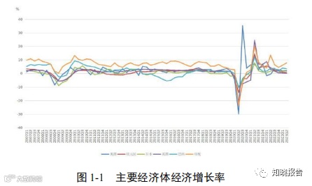 全球经济体总体保持增长,但增速较 2022 年明显放缓。美国一、 二季度国内生产总值(GDP)环比折年率分别为 2.0%和 2.1%,明显低 于 2022 年三季度 3.2%的高点。欧元区上半年表现与美国相似,一、二 季度 GDP 同比分别增长 1.1%和 0.6%,较 2022 年一季度 5.5%的高点亦 明显放缓。印度、巴西、马来西亚、南非、土耳其和阿根廷等新兴经济 体上半年经济增速也从去年高位回落。据国际货币基金组织(IMF)预 测,全球经济增速将从 2022 年的 3.5%降至 3.0%,其中,发达经济体 增速将从 2.7%下降至 1.5%,新兴市场和发展中经济体增速总体稳定。