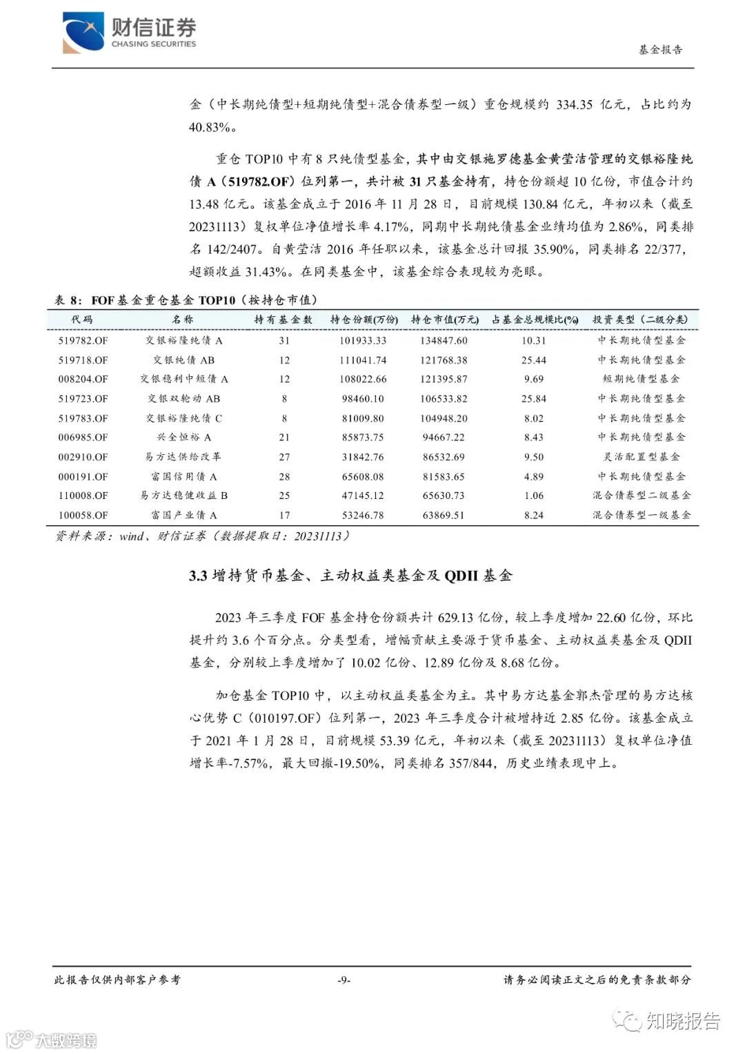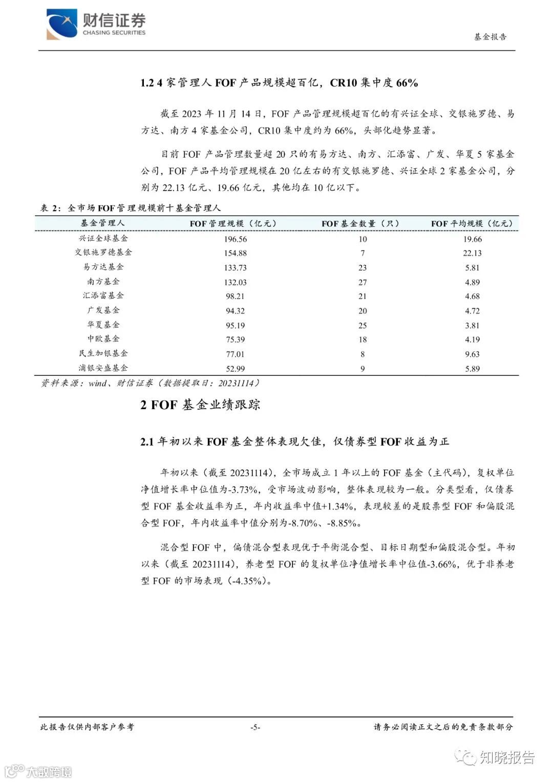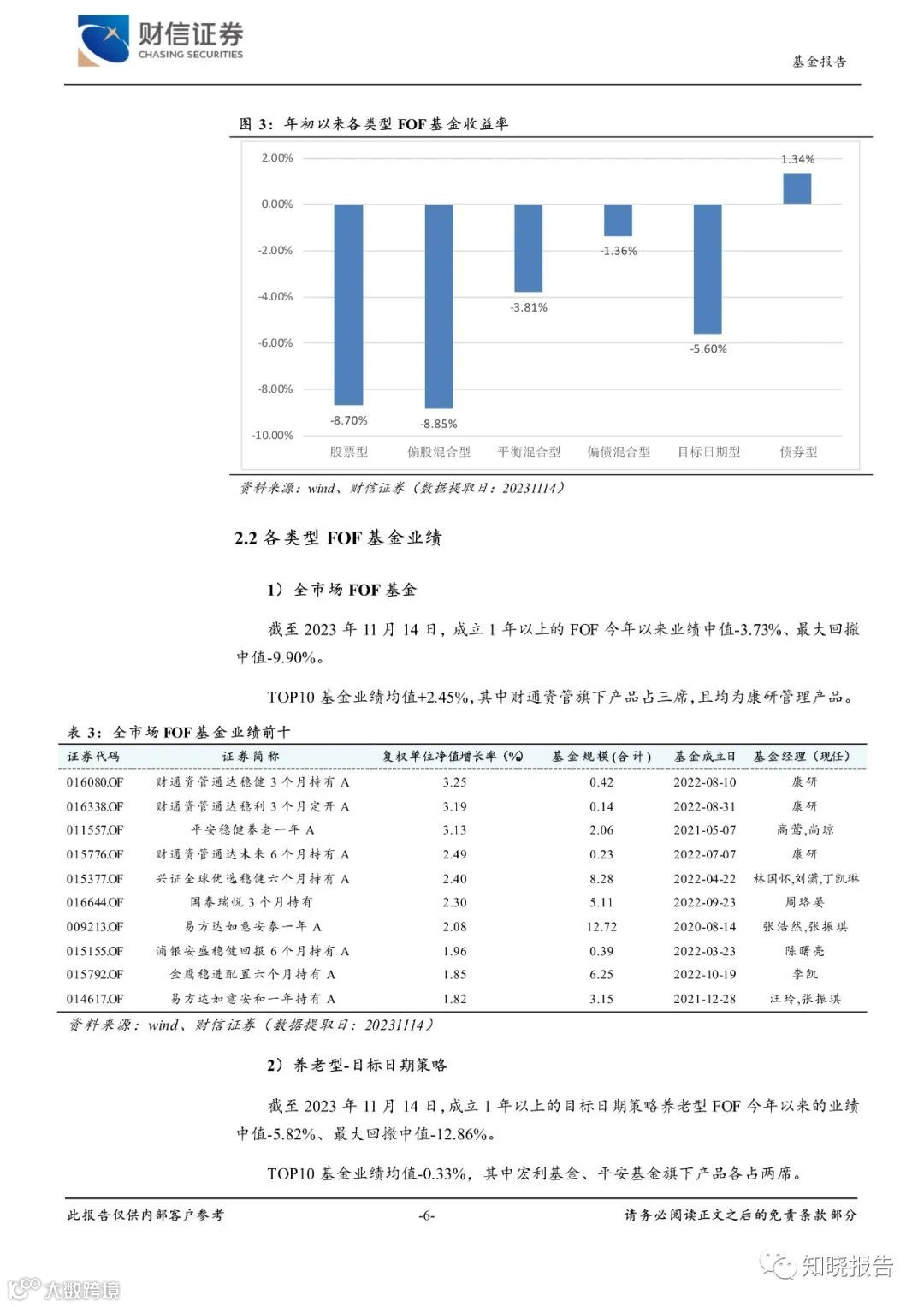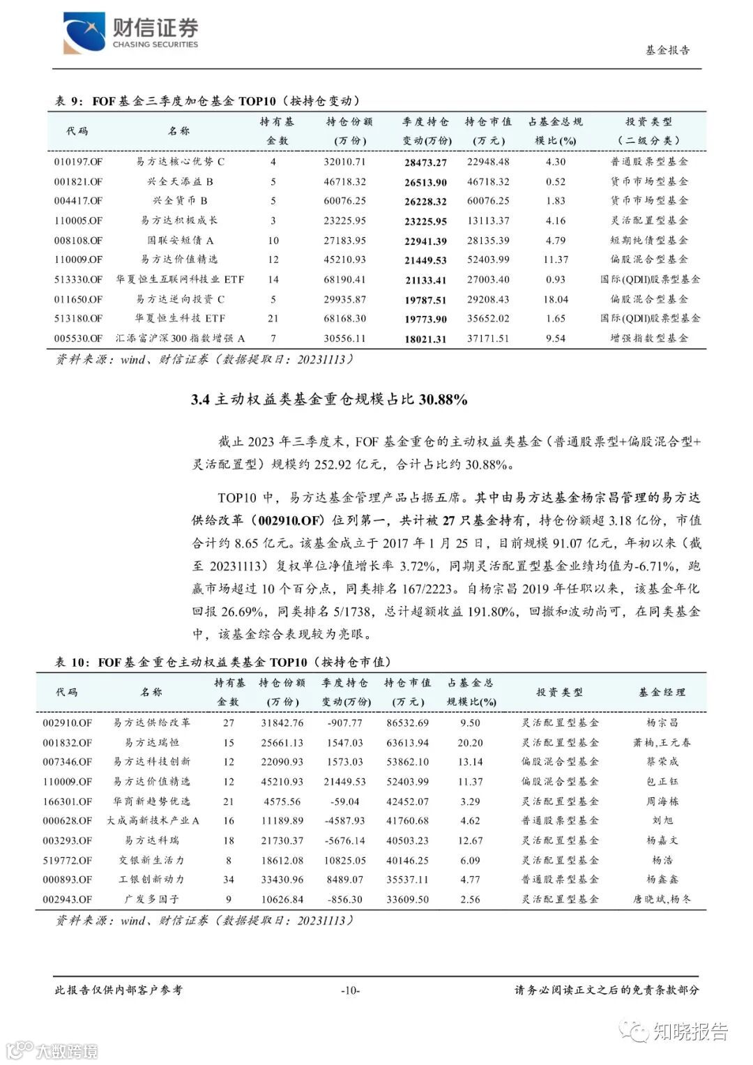 分类型来看,偏债混合型FOF规模占比高达45.92%,偏股混合型FOF规模占比28.47%,平衡混合型FOF规模占比9.57%。2023年以来,全市场新成立FOF基金106只,对应发行份额195.52亿份,占全市场FOF份额11.5%左右。